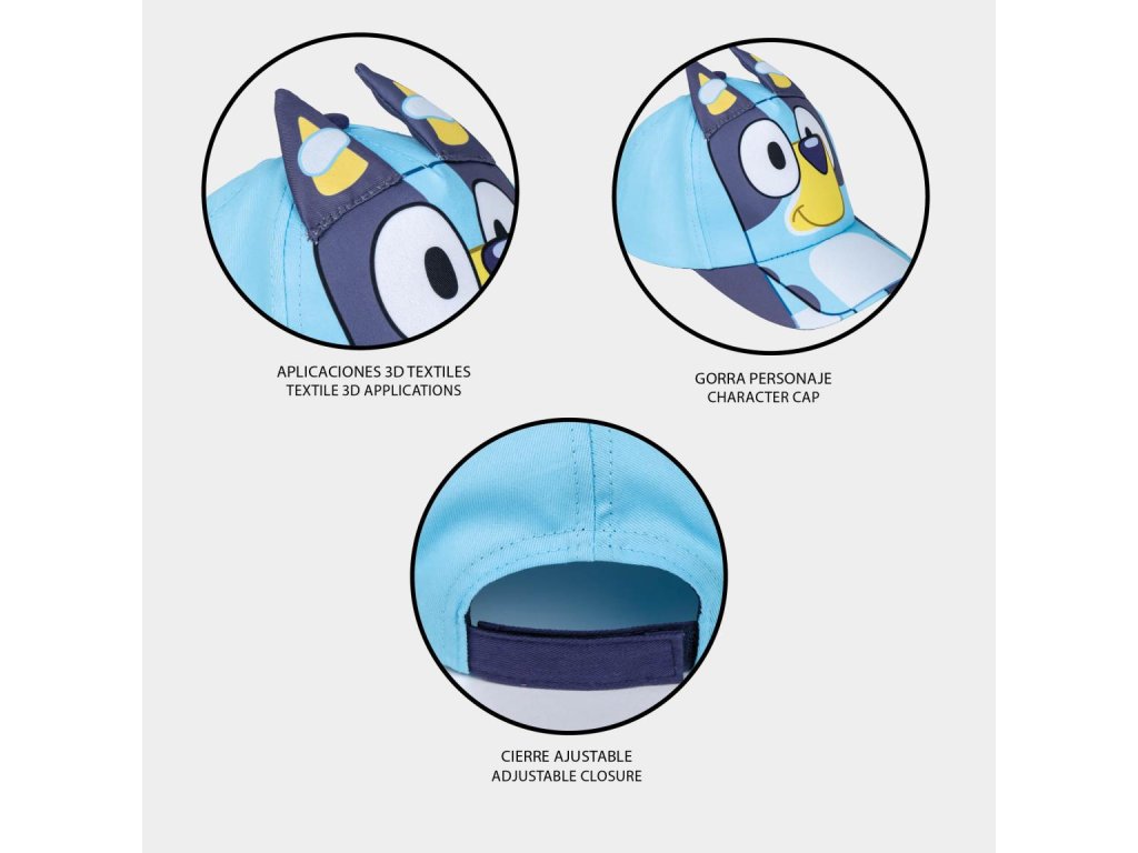 - Popis provedení: výšivka v motivu Bluey, kontrastní kšilt a jemné detaily
