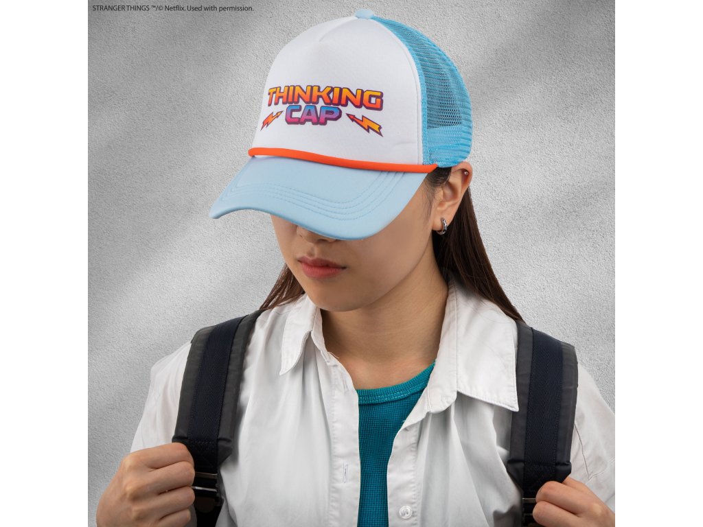 Přijměte esenci vtipu a moudrosti Dustina Hendersona s naší exkluzivní kšiltovkou Thinking Cap, která je věrnou kopií ikonické pokrývky hlavy, kterou si nasadil ve 4. sérii slavného seriálu Stranger Things. Tato kšiltovka ve stylu trucker se pyšní okouzlující barevnou paletou světle modrých a bílých akcentů, které kšiltovce vdechují nádech retro přitažlivosti. Staňte se součástí Dustinovy oddané fanouškovské základny a udělejte odvážné prohlášení s kšiltovkou Dustin's Thinking Cap.