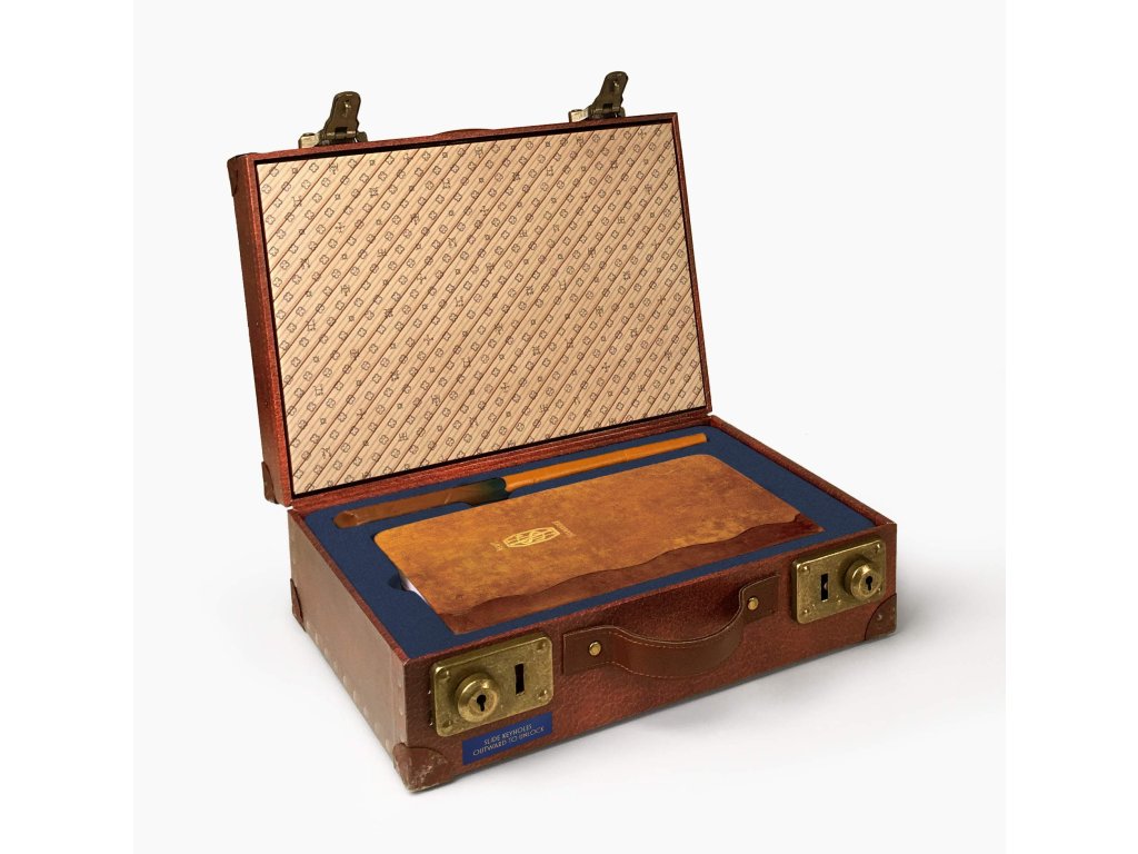 - Jedná se o luxusní repliku s vnější imitací kůže, má kovové rohy a funkční kovové západky, které kufřík otevírají a zavírají.