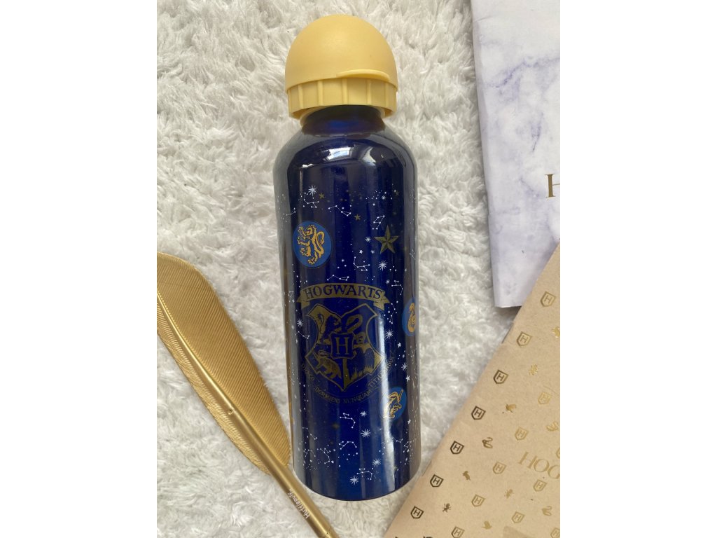 Lahev hliníková s pítkem, modrá - Hogwarts erb, Harry Potter