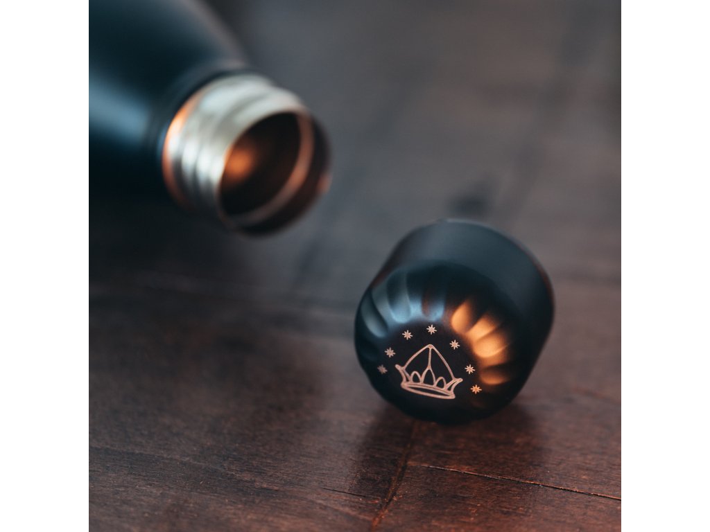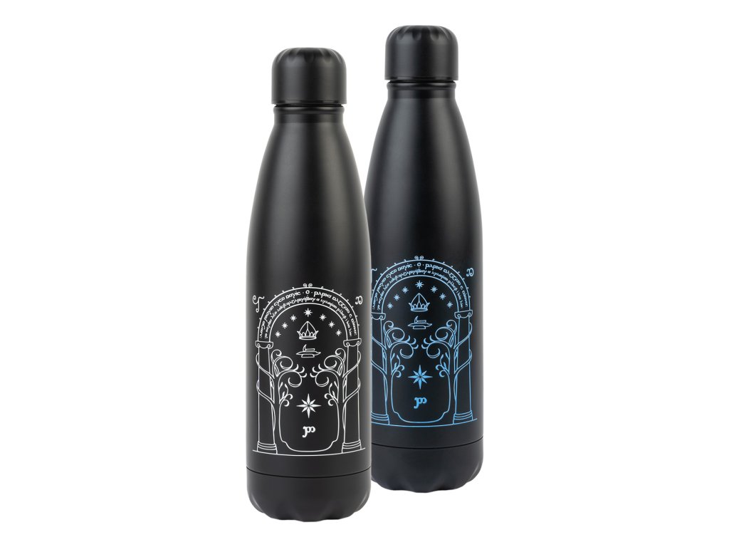 Lahev z nerezové oceli v designu brány do Morie z Pána prstenů, která mění barvu a teplotu - po naplnění studenou tekutinou mění svůj vzhled. Udrží nápoj studený 4 hodiny. Součástí je vzduchotěsný uzávěr. Nepoužívejte s horkými tekutinami.