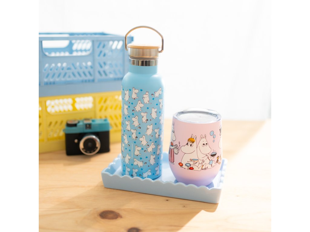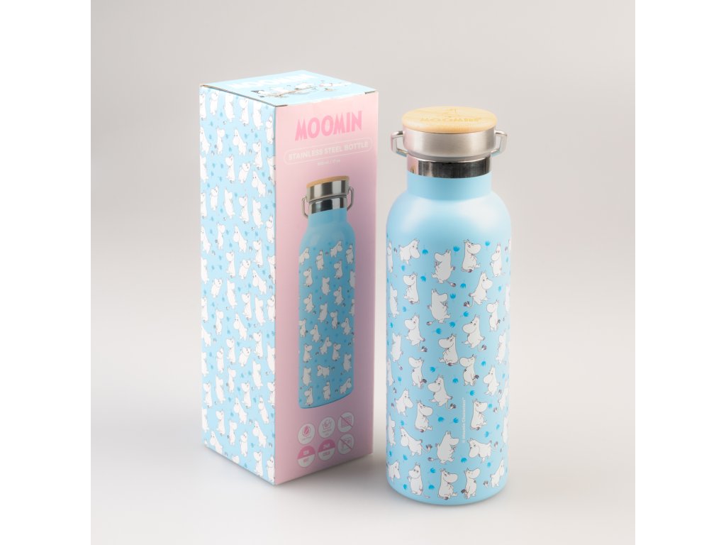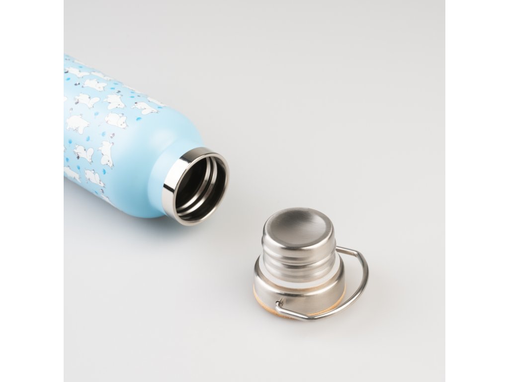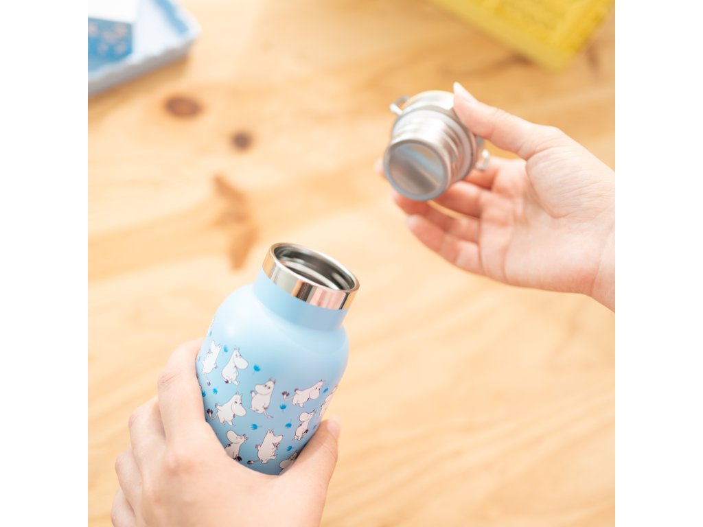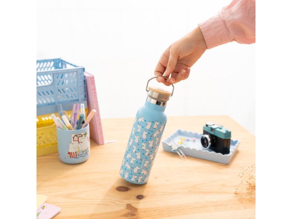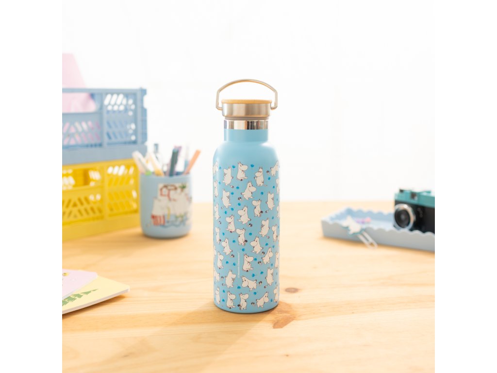 Lahev nerezová s kovovým uchem, modrá, Mumín