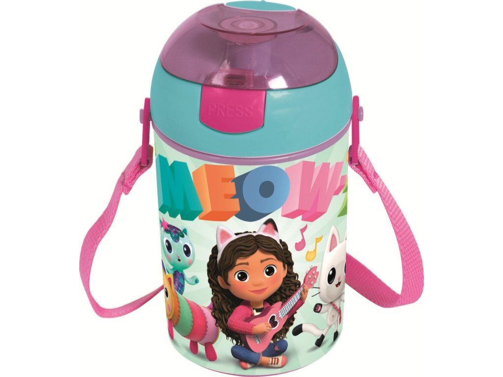 Dětská láhev Stor (450 ml) s motivem Gábinina kouzelného domku představuje lehký a odolný doplněk pro dodržování pitného režimu s praktickým výsuvným pítkem.