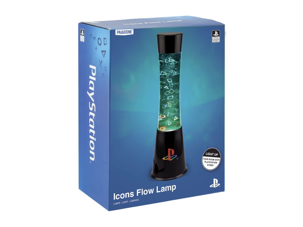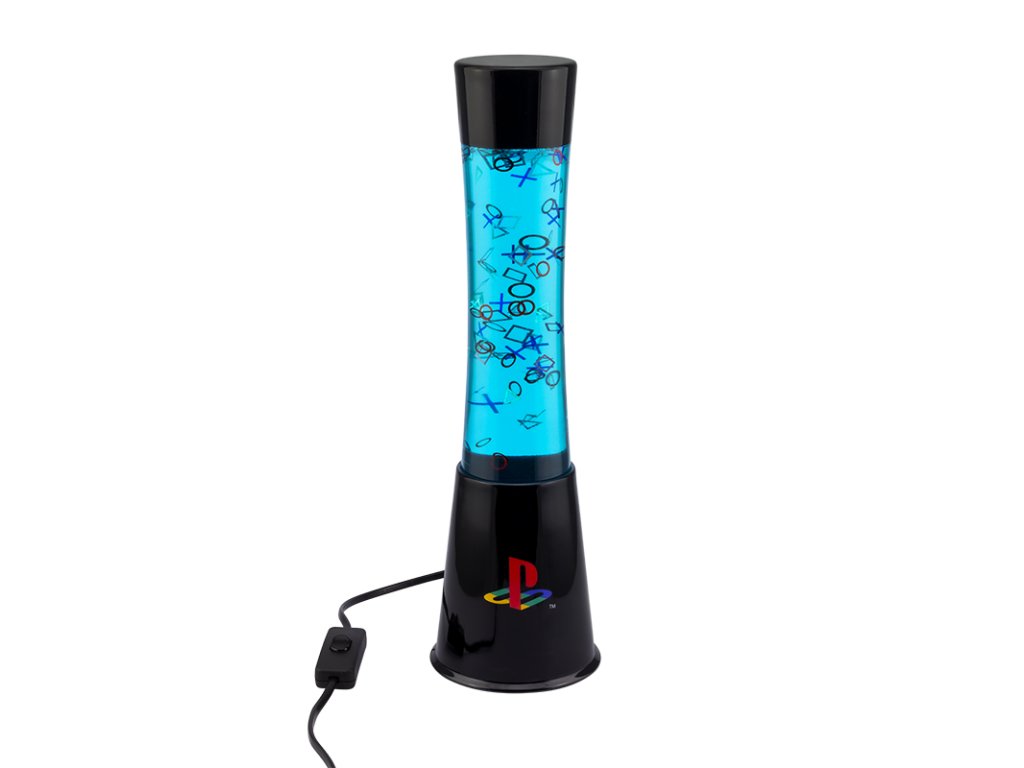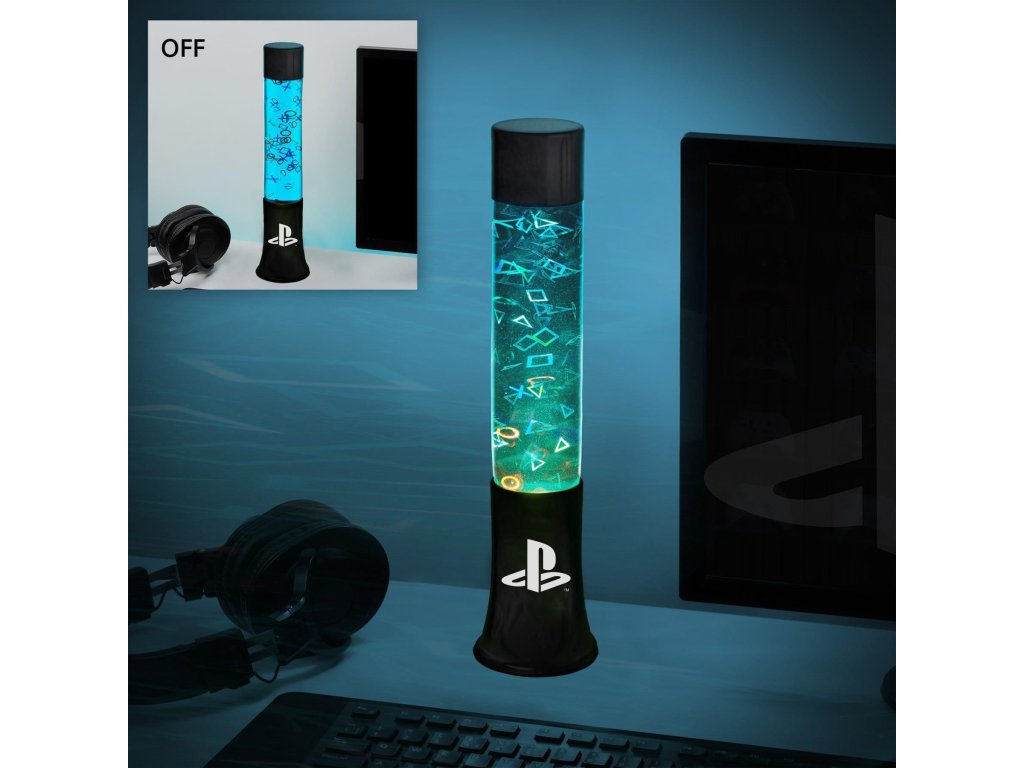 Lávová lampa pro hráče herní konzole PlayStationu s vířícími třpytkami ve tvaru tlačítek z ovladače. Napájená pomocí USB nebo AAA baterií (3 ks), které nejsou součástí balení. Lampa je vysoká cca 33 cm.Doplňkové parametry