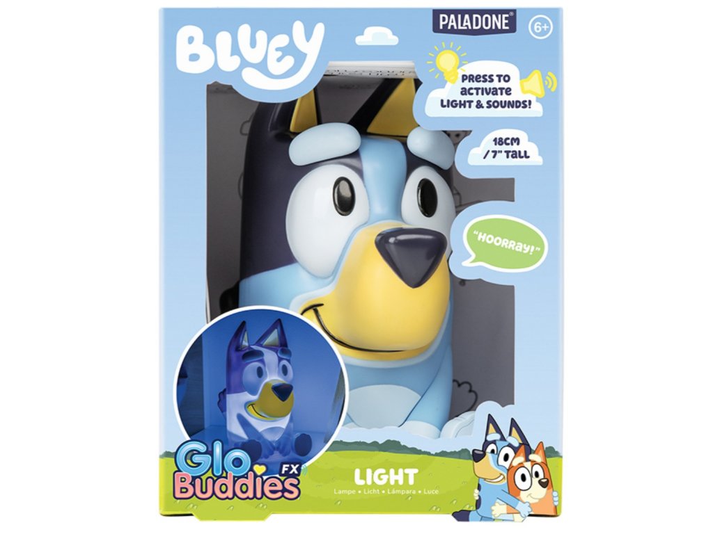Lampička Bluey rozzáří dětský pokoj jemným světlem a potěší každého fanouška oblíbeného psíka. Navíc vydává zvuky ze seriálu, takže se stane hravým a kouzelným doplňkem při usínání i hraní.