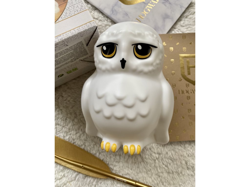 3D lampa dekorativní s motivem sovy Hedviky z kouzelnické ságy Harryho Pottera může být umístěná na odnímatelném stojanu anebo ji lze zavěsit a stěnu. Nabíjení dvěma AAA bateriemi, které nejsou součástí balení.