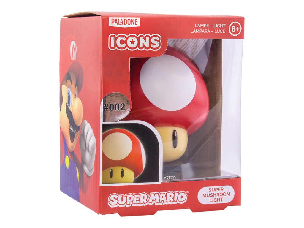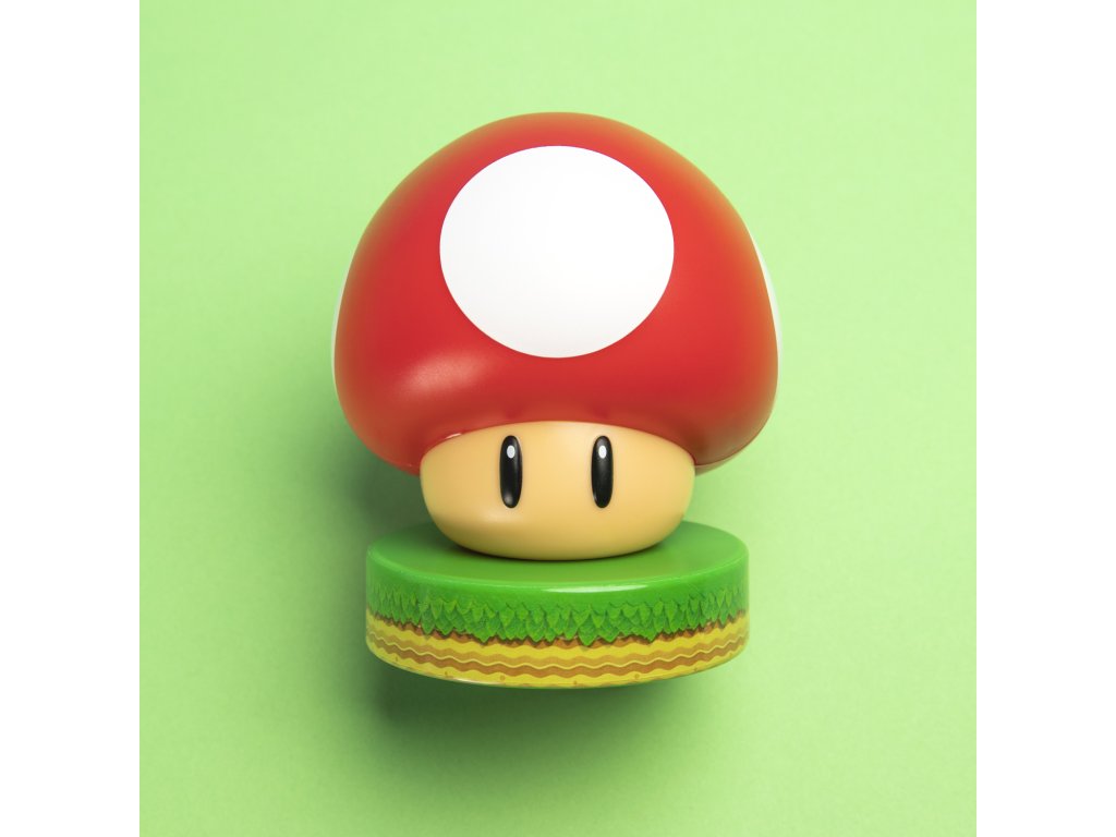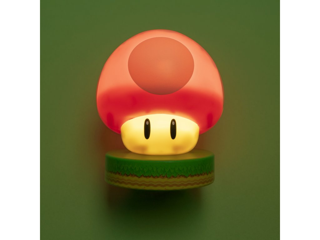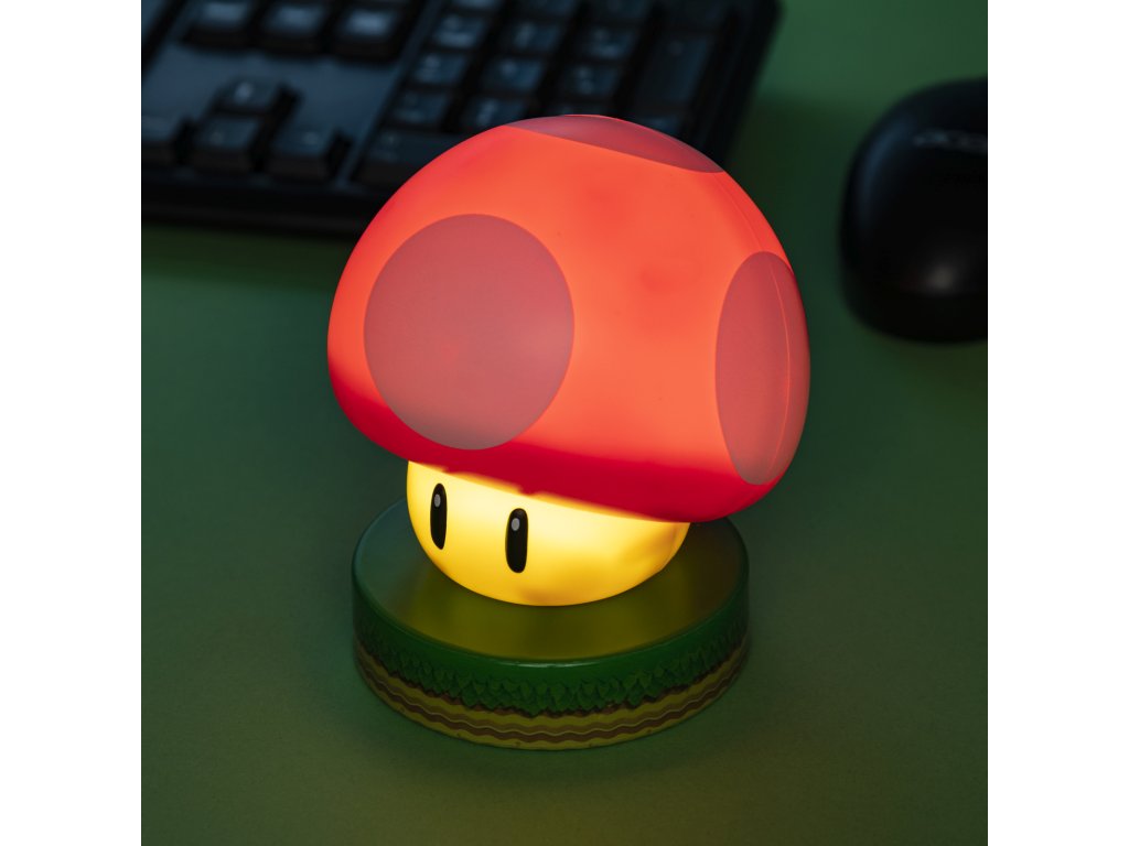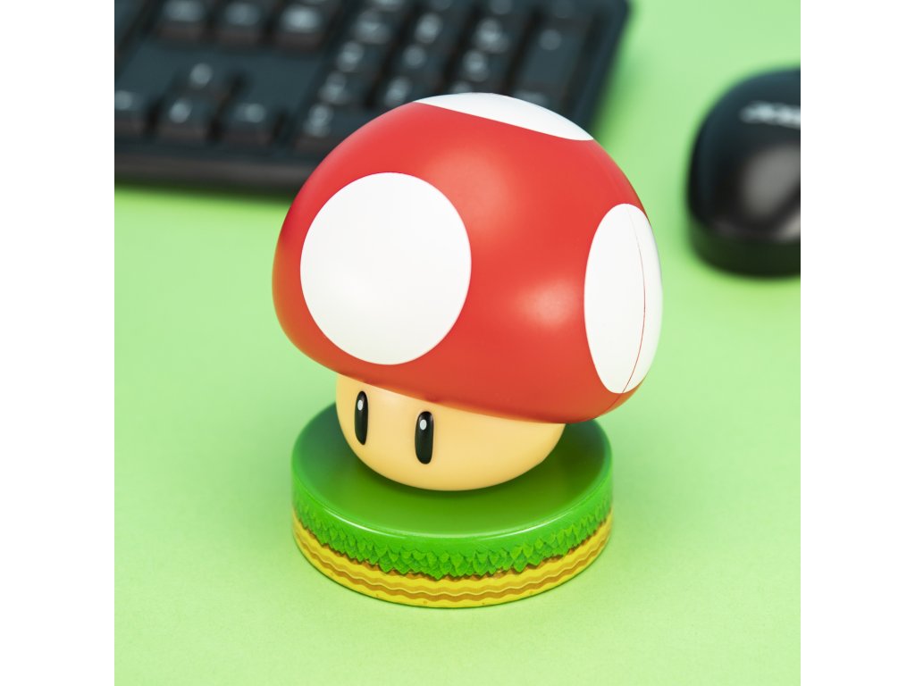 Dekorativní svítící plastová figurka Icon Light DC – Super Mario Houba o rozměru 10 cm. K provozu jsou nutné 3x AAA baterie, které nejsou součástí balení.Doplňkové parametry
