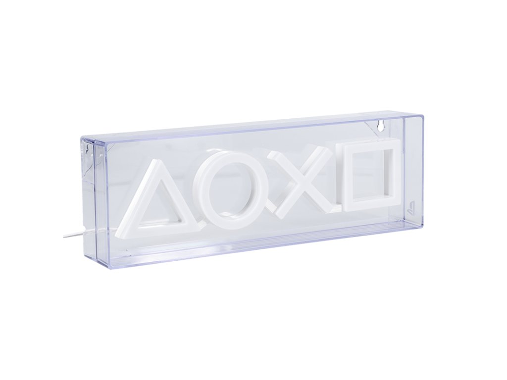 Přineste do svého prostoru světlo poháněné s touto PlayStation neon lampičkou. Lampička zachycuje ikonické symboly – trojúhelník, kruh, kříž, a čtverec. Možnost montáže na stěnu. Neon světlo napájené pomocí USB kabelu, je součástí balení.Doplňkové parametry
