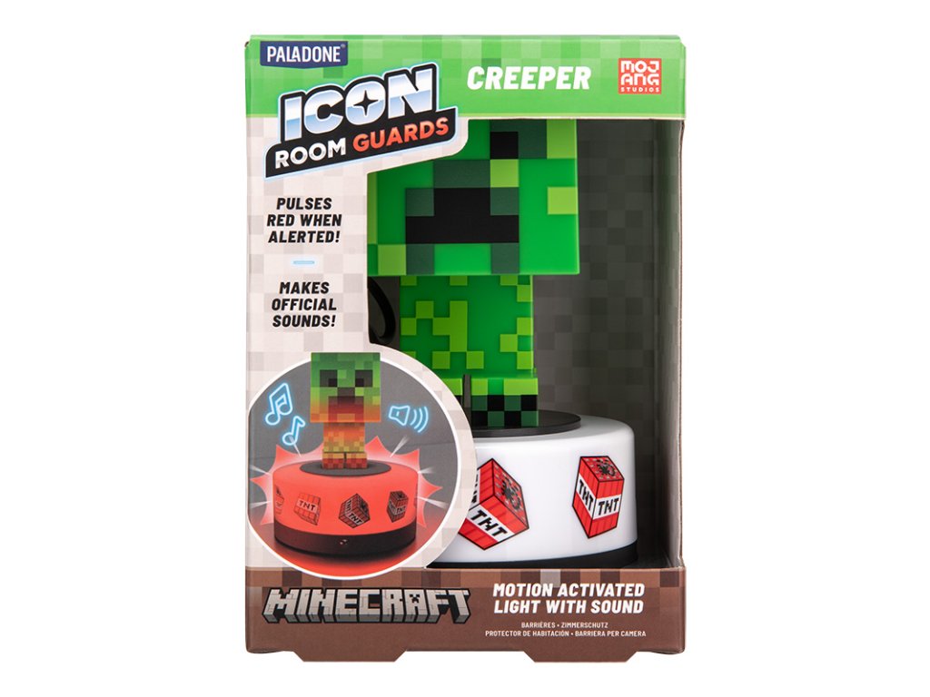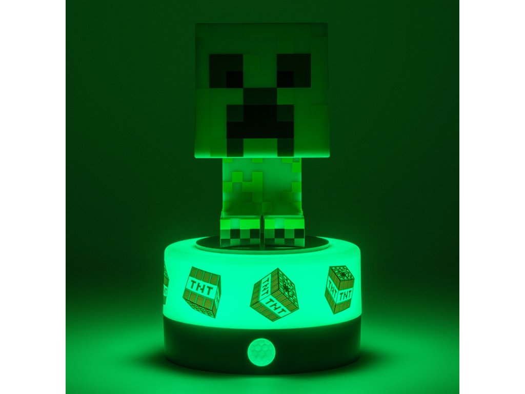 LED lampička s motivem Ceepera od Minecraft je napájené pomocí AAA baterií, které nejsou součástí. Světlo nabízí dvě funkce použití. Zelené světlo slouží jako noční světlo, červené světlo je funkce strážce, který je aktivován pohybem. Lampička vydává oficiální zvuk.Doplňkové parametry