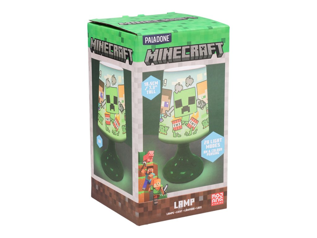 Stolní lampička Minecraft vytvoří pixelový ráj u vás v pokoji. Zajišťuje jemné a rozptýlené světlo šetrné k vašim očím. Má dva režimy osvětlení – stálé světlo nebo postupné prolínání barev. Kompaktní rozměr, vysoká 18,5 cm. Napájená pomocí USB nebo AAA baterií (3 ks), které nejsou součástí balení.Doplňkové parametry