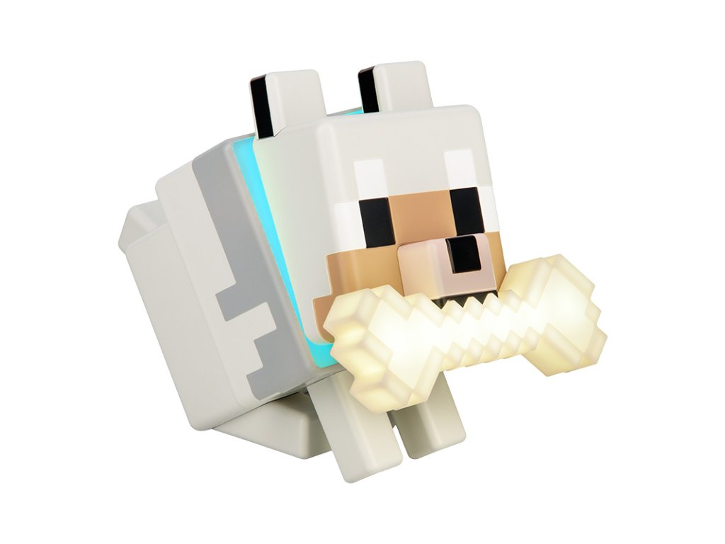 Lampička s 3D figurkou vlka, který se pyšní svou kostí a obojkem pro všechny fanoušky Minecraftu. Jednoduše zapnete klepnutím na figurku, obojek mění barvy, až si vyberete svůj oblíbený svit, znovu klepněte. Lampička je napájena 2 AA bateriemi, které nejsou součástí balení.Doplňkové parametry