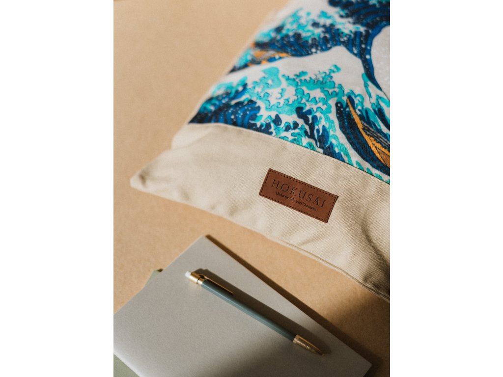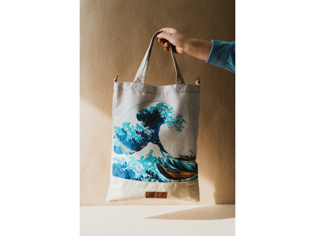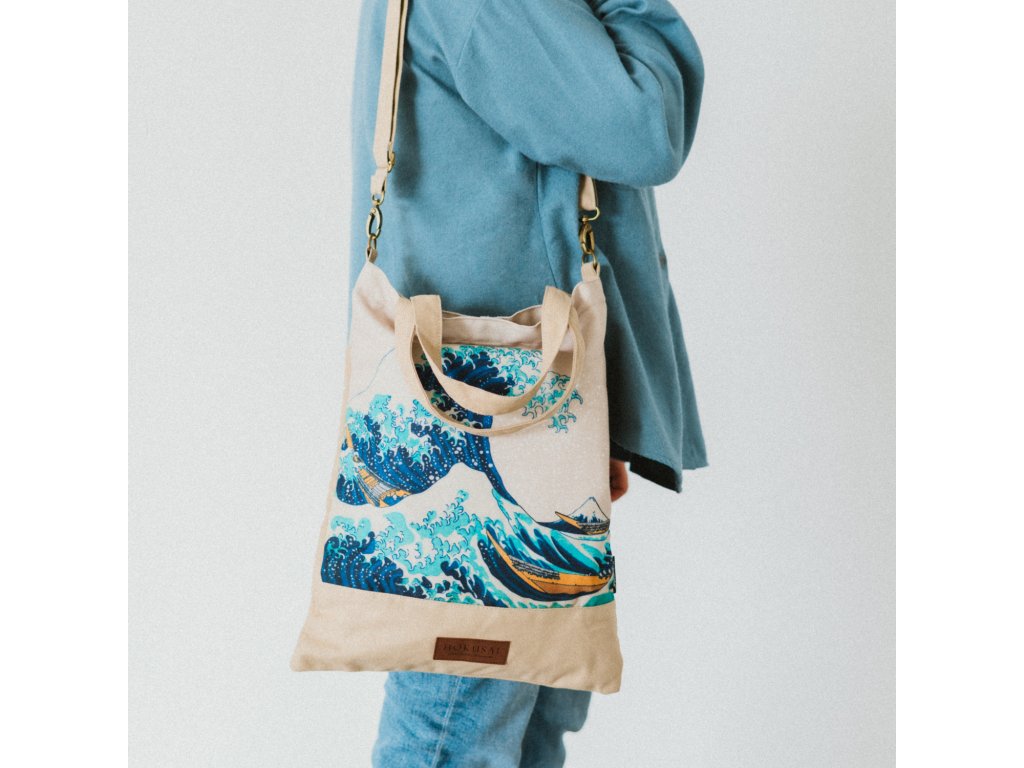 Látková taška bílá, Velká vlna Kanagawy, Hokusai