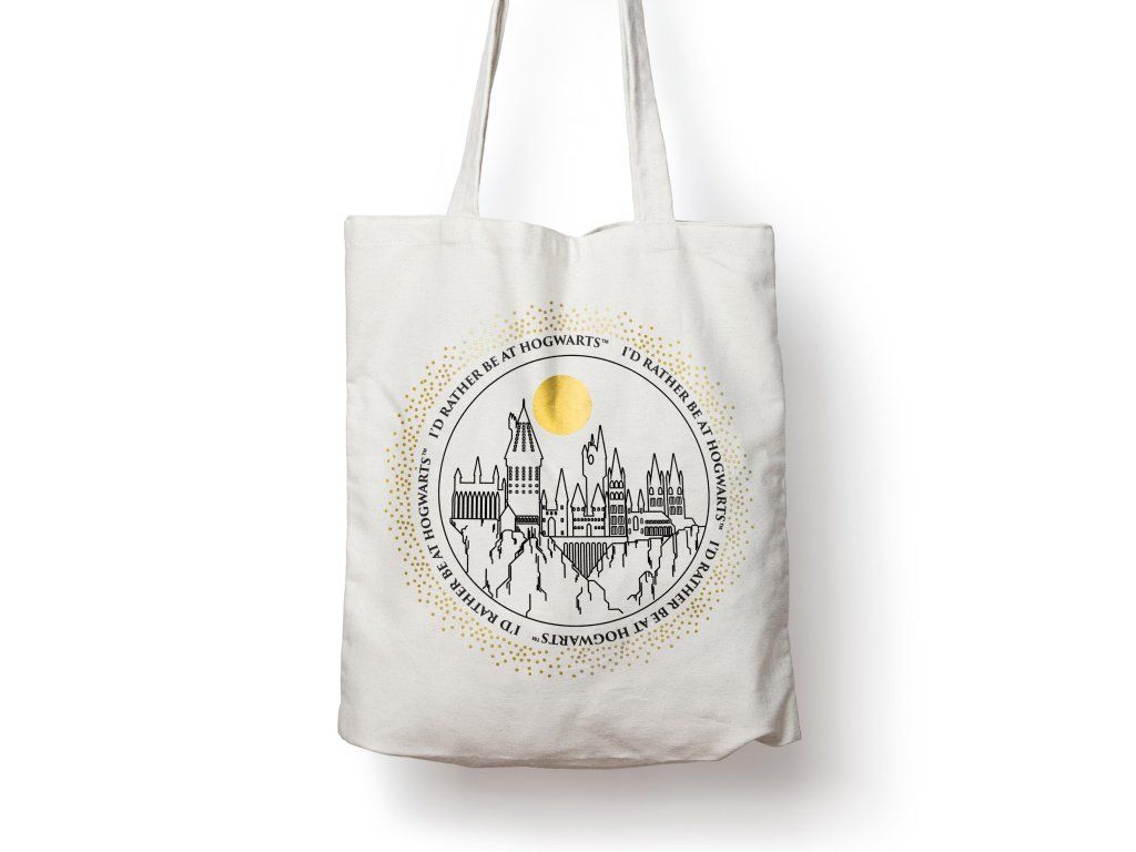 Ukažte svou hrdost na bradavickou školu s touto fantastickou bavlněnou taškou! Zdobí ji magický design hradu Bradavice a nápis „I’d rather be at Hogwarts“ (Raději bych byl v Bradavicích) lemující okraj motivu. Tato prostorná taška je jako stvořená pro každodenní použití – ideální na přenášení učebnic, nákupů nebo jakýchkoli nezbytností, které potřebujete na svém dalším dobrodružství.Doplňkové parametry