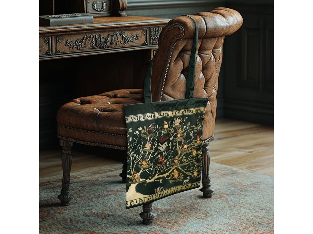Tato nákupní taška je vyrobena ze 100% polyesteru se vzorem inspirovaným tapiserií rodiny Blacků, potištěným na obou stranách v kontrastních černých a bílých tónech.Doplňkové parametry