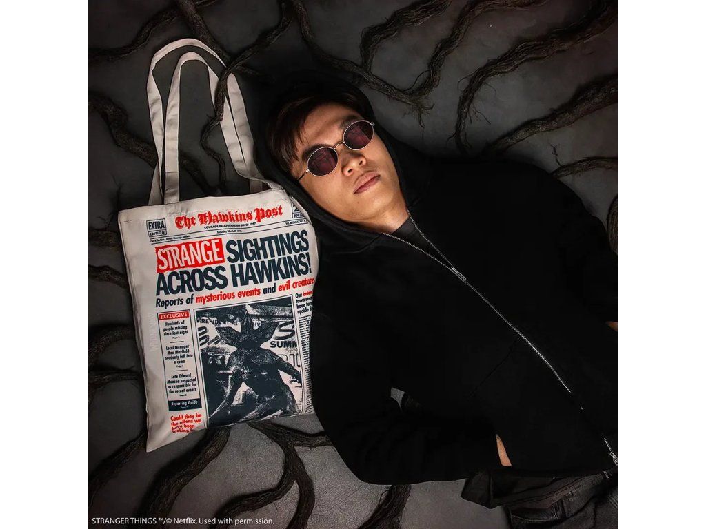 Taška, která vypadá jako titulní strana Hawkins Post a připomíná okamžik, kdy se celé město obrátilo vzhůru nohama. Design inspirovaný světem Stranger Things zaujme na první pohled a okamžitě prozradí, že patříte mezi fanoušky seriálu. Skvělý doplněk pro ty, kteří mají rádi seriálovou nostalgii, originální design a praktické využití v jednom.Doplňkové parametry