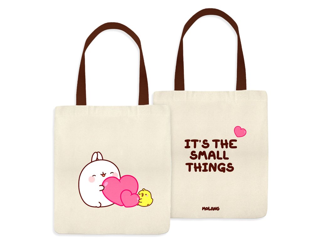 Objevte roztomilou tašku Molang Tote s krásným designem z obou stran. Na jedné straně drží slavný bílý Molang srdce v jasně růžové barvě a je doprovázen svým věrným kamarádem, malým žlutým kuřátkem.Doplňkové parametry