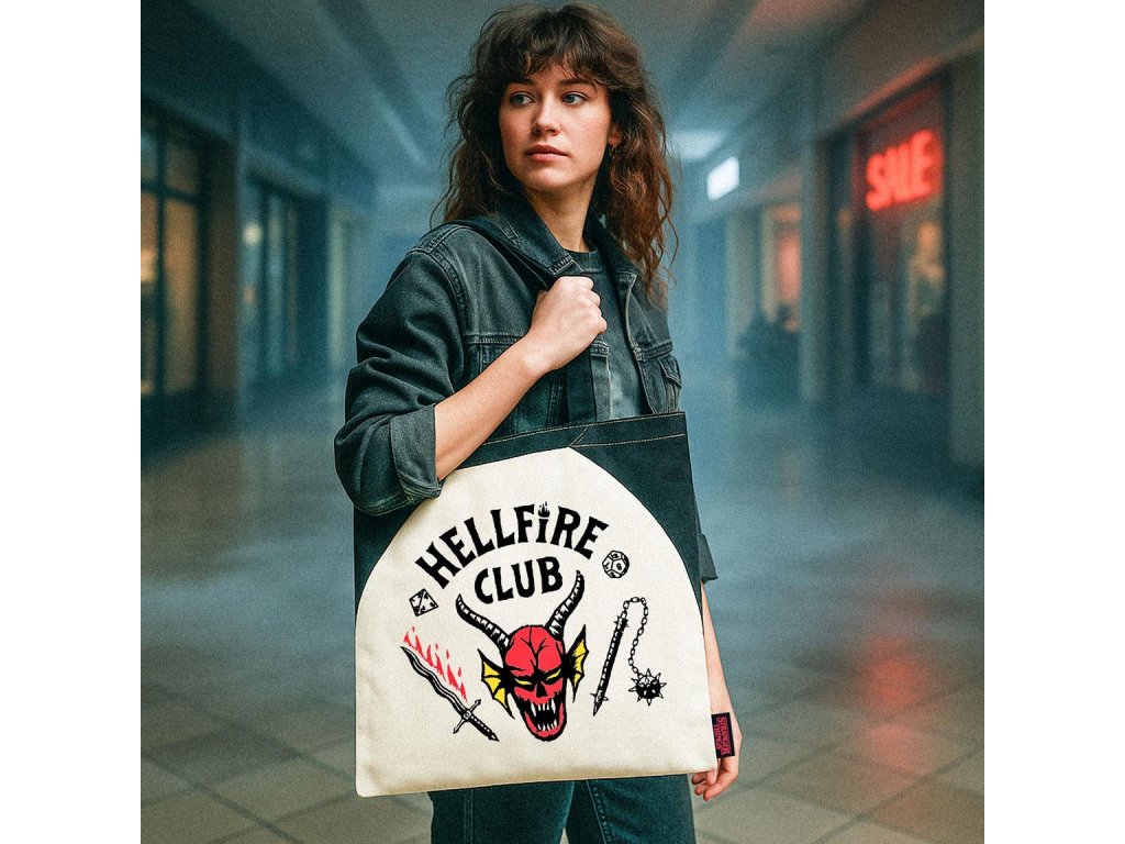 Stylová látková taška s ikonickým logem Hellfire Club ze seriálu Stranger Things je perfektním doplňkem pro fanoušky fantasy, dobrodružství a všeho, co se odehrává v Hawkinsu. Díky pevnému materiálu a praktickým rozměrům se hodí na nákupy, školu i každodenní nošení.Doplňkové parametry
