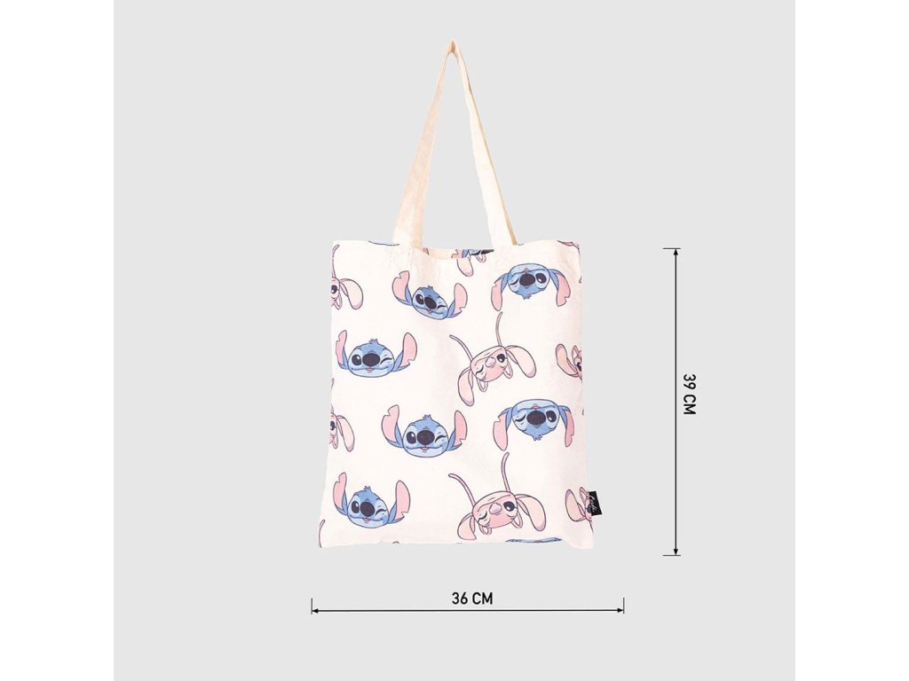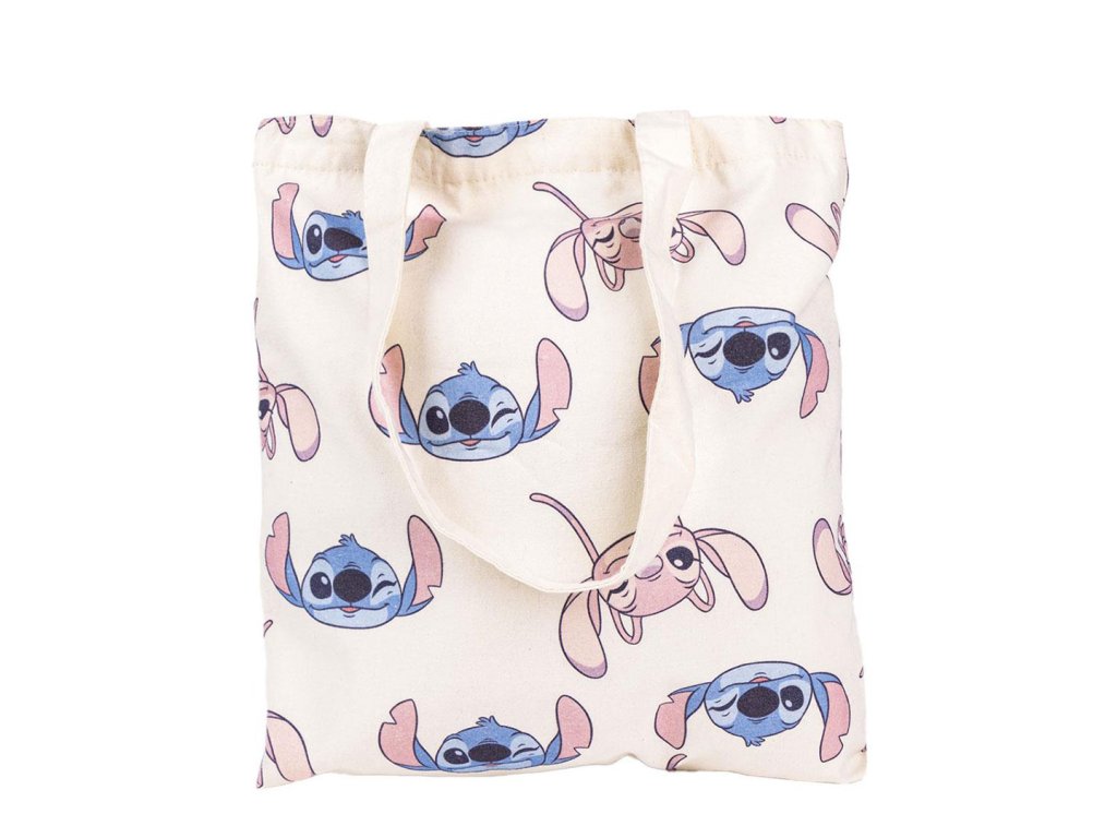 Roztomilá plátěná taška ideální na nákupy nebo na pláž pro všechny fanoušky Lilo & Stitch. Tašku zdobí veselý motiv Stitche a Angel, který dodává praktickému doplňku hravý a barevný vzhled. Lehká, prostorná a snadno přenosná.Doplňkové parametry