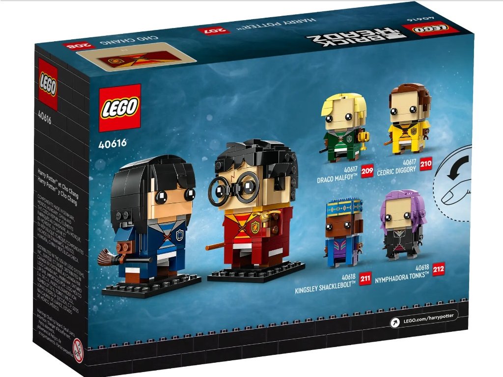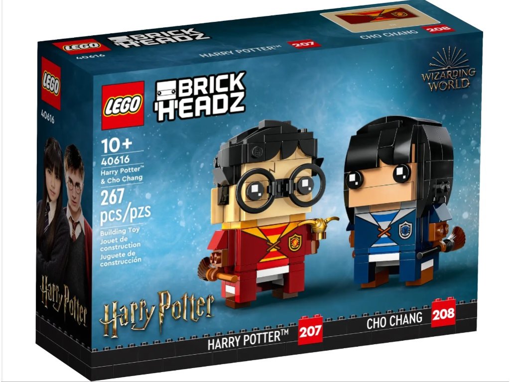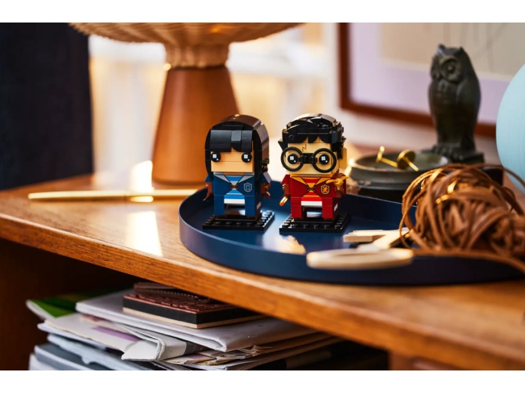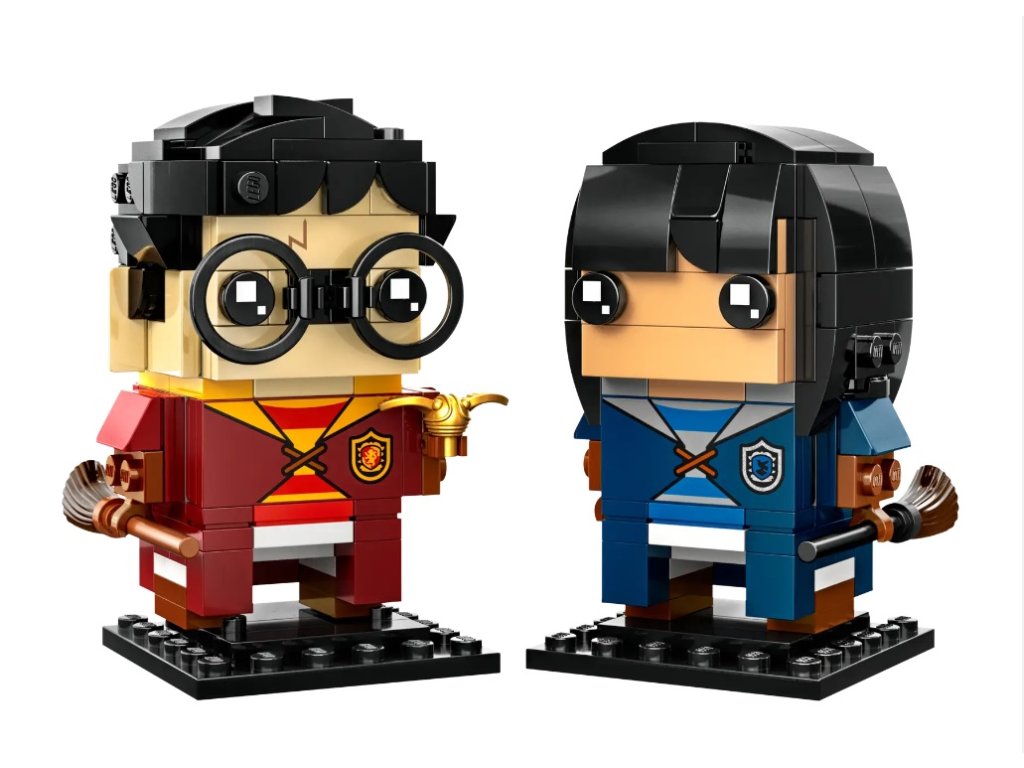 - Harry Potter™ a Cho Changová ve stylu LEGO® BrickHeadz™ (40616) – Postavte si 2 postavy ve famfrpálových uniformách jejich kolejí a vystavte si je s koštětem a Zlatonkou