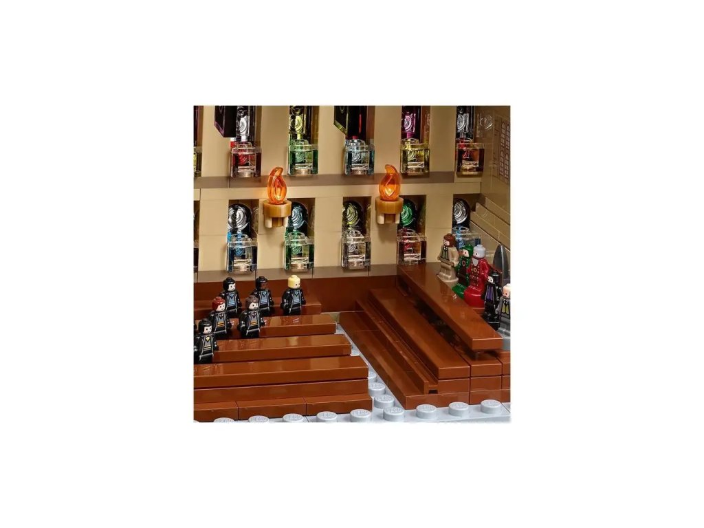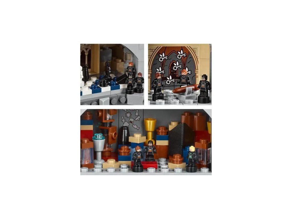 - Součástí sady je také 27 mikrofigurek: Harry Potter™, Ron Weasley™, Hermiona Grangerová, Draco Malfoy™, Albus Brumbál, profesor Snape, profesorka McGonagallová, Remus Lupin, profesorka Dolores Umbridgeová, Argus Filch, Lord Voldemort™, Bellatrix Lestrangeová, 3 studenti ze všech 4 kolejí, 2 šachové figurky a socha architekta Bradavic a 5 mozkomorů, a k tomu navíc figurky pavouka Aragoga a baziliška, a skládací maďarský trnoocasý drak.