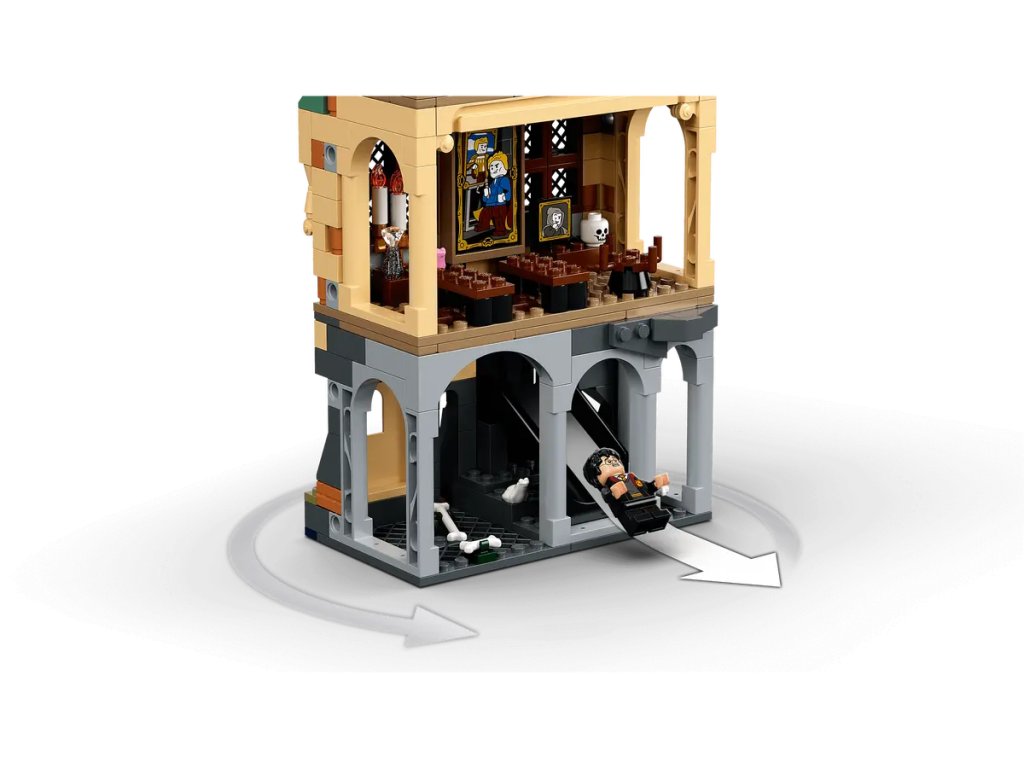 Všestranná stavebnice obsahuje oblíbená místa, kouzelné doplňky a známé postavy z filmů o Harrym Potterovi. Ve Velké síni najdete 2 dlouhé stoly, Brumbálův pultík ve tvaru zlaté sovy a další autentické prvky, například Moudrý klobouk. Stejně jako ve filmech se do Tajemné komnaty dostanete ikonickým kulatým vchodem a nechybí ani velká socha s otevíracími ústy, která odhalí chodbu, jíž se do místnosti dostane bazilišek. Harry Potter, Ginny Weasleyová, Tom Raddle, Colin Creevey, Justin Finch-Fletchley, Lenka Láskorádová, Zlatoslav Lockhart, Albus Brumbál, profesorka Sinistra a Skoro bezhlavý Nick slibují spoustu možností k hraní i vystavení. Můžete se těšit také na sběratelské předměty: exkluzivní zlatou minifigurku Voldemorta, která byla vydána k výročí řady, a 6 náhodných kouzelnických karet.