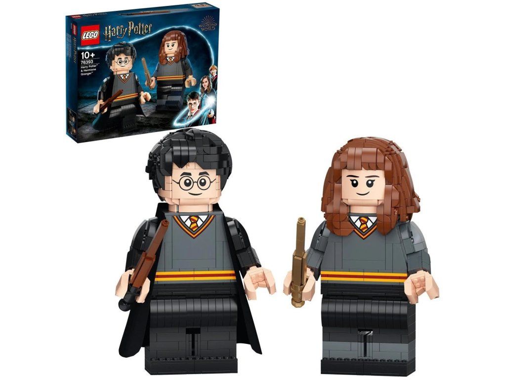 Děti si užijí velikou porci kouzelné zábavy s modely Harryho Pottera a Hermiony Grangerové z kostek. Obě figurky jsou 26 cm vysoké a lze s nimi pohybovat stejně jako s běžnými LEGO minifigurkami – hýbou rukama, nohama, trupem a figurka Harryho Pottera má otočnou hlavu. Harry je vybaven látkovou róbou, kterou lze sundat, a obě postavy mají hůlky z kostek. Ty inspirují děti k přehrávání spousty magických příběhů. Jakmile nebudou hrdinové středobodem napínavých dobrodružství, děti mohou 2 kamarády z Bradavic vystavit ve svém pokoji. Díky dvěma návodům na stavění si zábavu mohou užívat zároveň dva stavitelé.