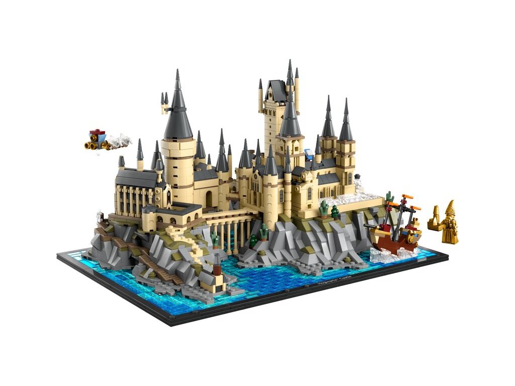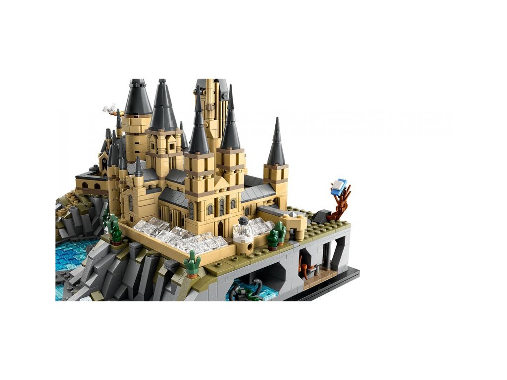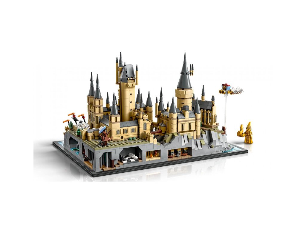 - Replika hradu – Postavte si Bradavický hrad a jeho okolí, včetně hlavní věže, astronomické věže, velké síně, nádvoří, mostů, skleníků, loděnice a Černého jezera