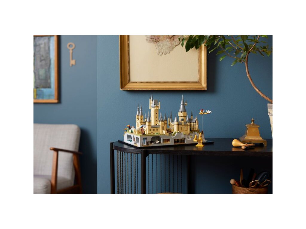 Podrobný návodna stavění najdete v krabici a v aplikaci LEGO® Builder. Přidejte loď Kruvalu, kočár Krásnohůlek, Ford Anglia zapletený do větví vrby Mlátičky, minifigurku architekta Bradavic a cedulku s nápisem „Hogwarts Castle“ („Bradavický hrad“) a vytvořte tak kouzelný výstavní kousek.