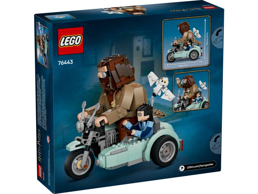 - 3 postavy LEGO® Harry Potter™ z kostek – Model obsahuje vestavěné pohyblivé figurky Harryho Pottera, Hedviky a Rubeuse Hagrida, kteří jedou na Hagridově létající motorce se sajdkárou
