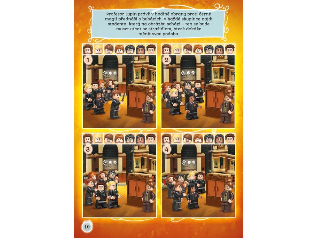 Vyřeš hádanky, projdi bludišti a zabav se nejrůznějšími aktivitami v této knížce nabité napětím. Sestav minifigurku profesora Lupina i ministavebnici mozkomora a přidej se k bradavickým studentům v hodinách obrany proti černé magii, kde se učí bojovat proti mozkomorům. Popadni svou hůlku a i ty se postav tomuto temnému stvoření!