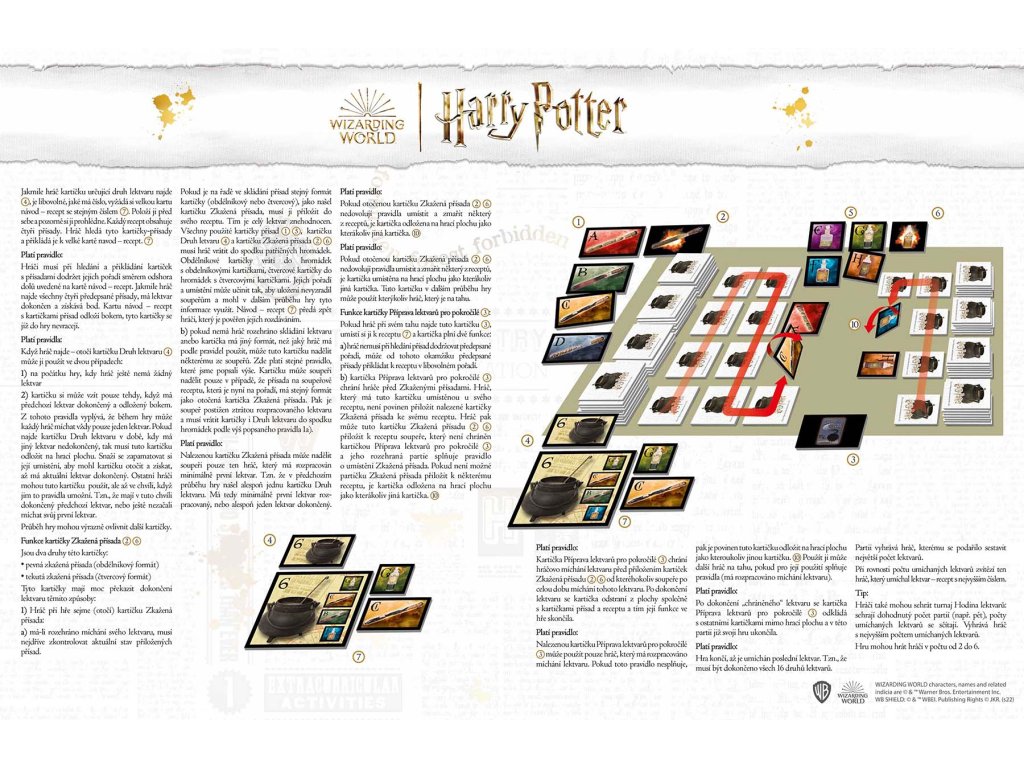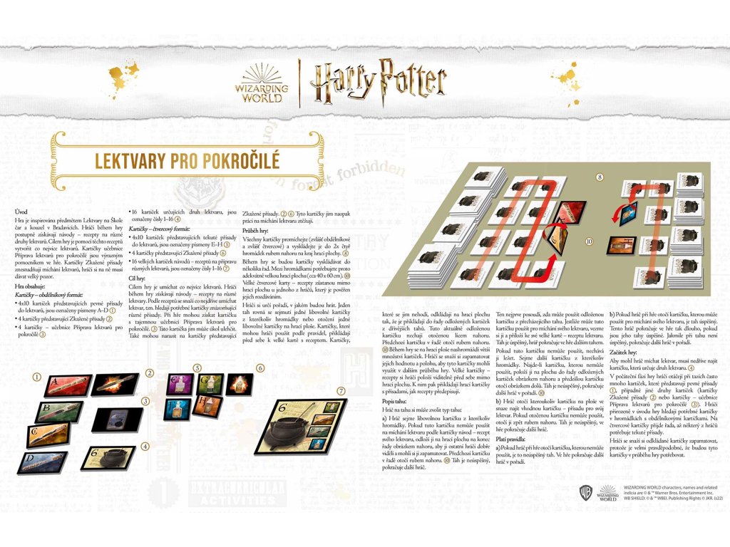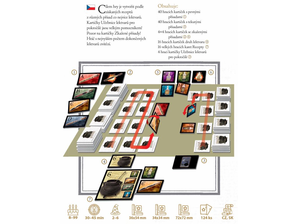 •obsahuje 32 kartiček s druhy a recepty lektvarů
