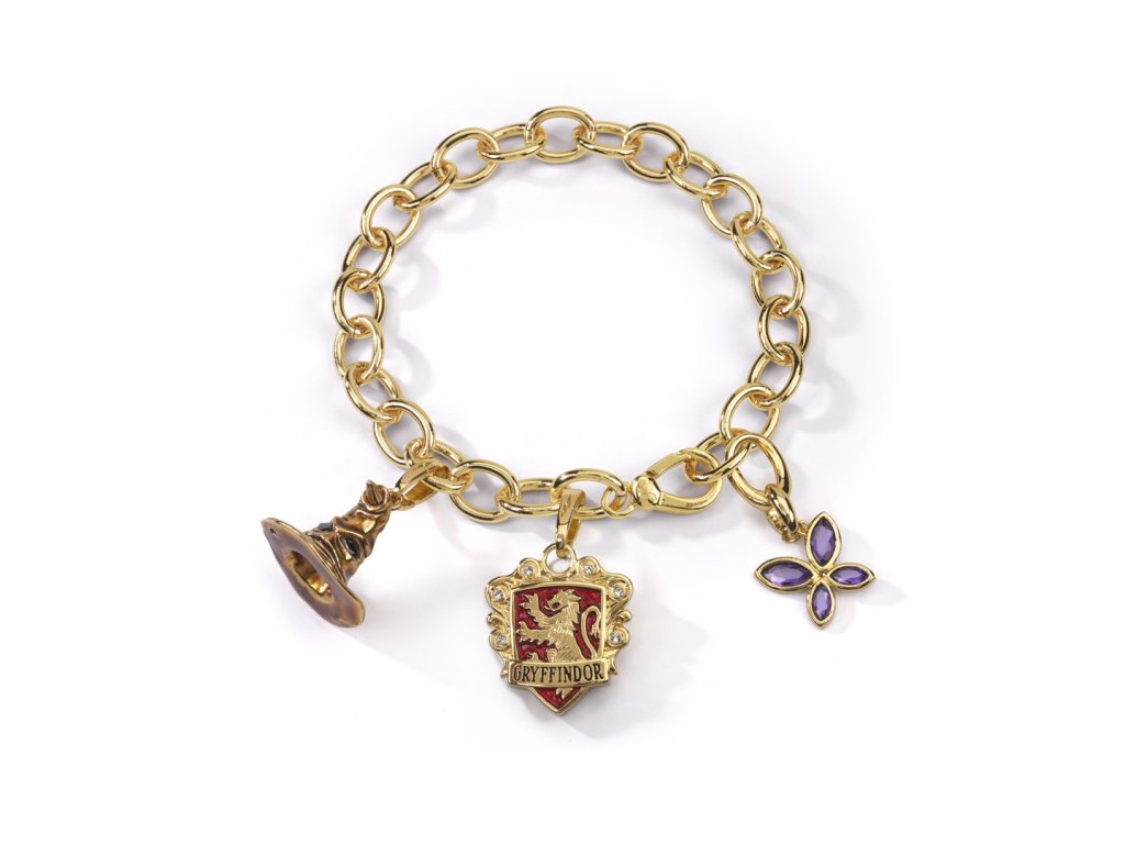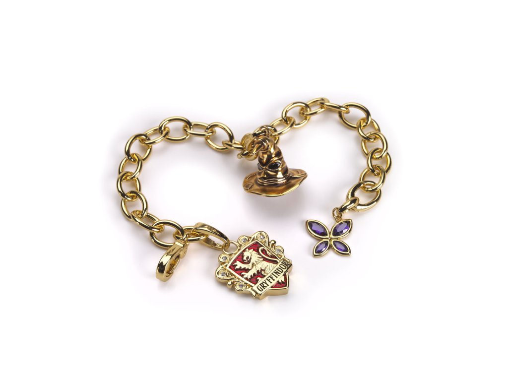 Tento speciální náramek se zlatým pokovem obsahuje tři exkluzivní přívěsky: erb koleje Nebelvír, Moudrý klobouk a logo nadace Lumos. Délka náramku je přibližně 21 cm. „Náramek s přívěsky se zdá být jen nevinným šperkem. Jaký jiný klenot je však tolik prodchnut pamětí a citem? Proč bychom ty malé mistrovské kousky nazývali přívěsky, kdyby to nebyla narážka na jejich magické vlastnosti? Mají význam, který přesahuje prostou hodnotu. Jsou to osobní amulety.“ – J. K. Rowlingová „Lumos je kouzlo, které jsem vytvořila v Harrym Potterovi. Přináší světlo na zoufale temná a děsivá místa. A přesně to děláme v Lumosu: pomáháme osamoceným dětem, na které svět zapomněl. Chceme, aby všichni především pochopili problém opuštěných dětí a pak společně hledali cestu, jak ho vyřešit.“ – J. K. Rowlingová, zakladatelka a prezidentka nadace Lumos Nejméně 15 % doporučené maloobchodní ceny náramku bude odvedeno nadaci Lumos Foundation, neziskové organizaci založené J. K. Rowlingovou a registrované v Anglii a Walesu pod číslem charity 1112575.Doplňkové parametry