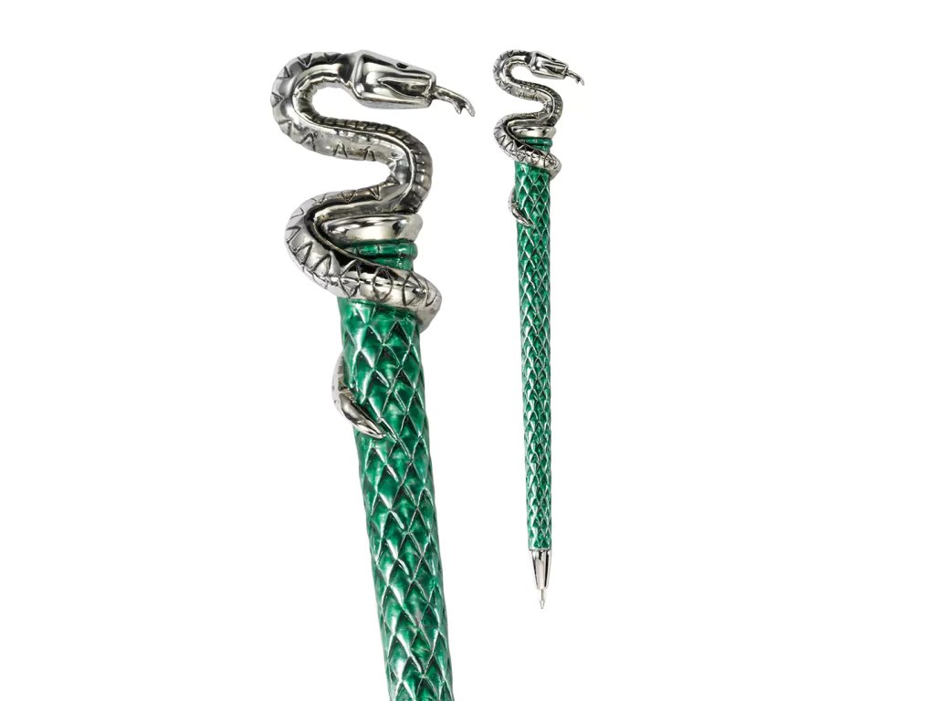 Dejte nádech luxusu svým kancelářským potřebám s těmito mimořádnými kolejními propiskami, kterými dáte okamžitě najevo, do které bradavické koleje se řadíte. Vysoce odolné kovové propisky jsou buď pozlacené (24-karátové zlato) nebo postříbřené, a lze u nich měnit náplň (konkrétně Zebra grip medium).
