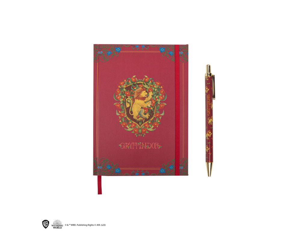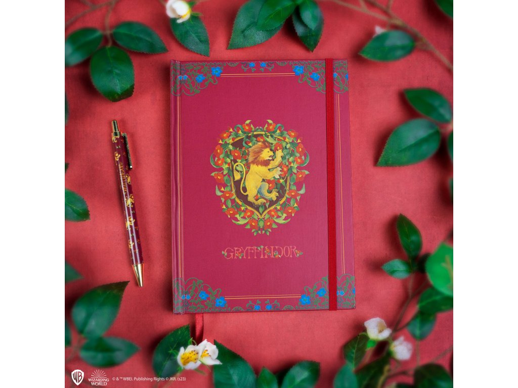 Elegantní zápisník a pero s motivy Nebelvíru, ideální pro studenty a fanoušky kouzelnického světa.
