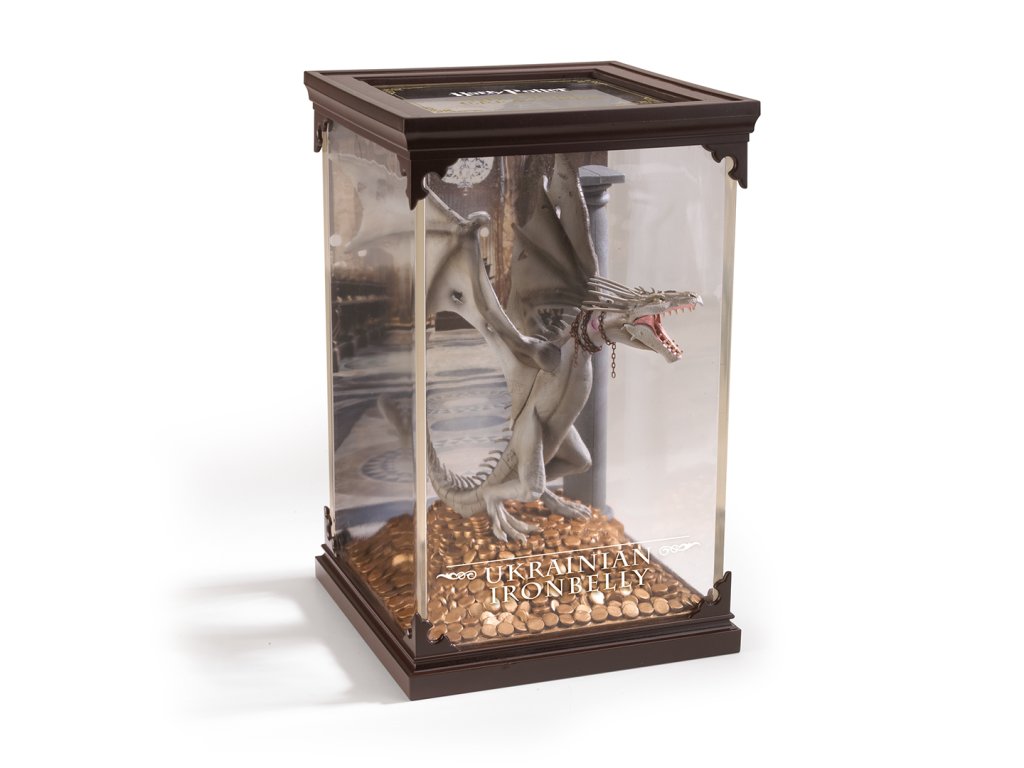 Ručně malované diorama ukazující ukrajinského železnobřichého draka, největší druh draka, s obrovským rozpětím křídel a drápy pevnými jako ocel. Tento drak hlídal zlato ve trezorech Gringottovy banky ve filmové sérii Harry Potter. Rozměr: 18,5 x 10,5 x 10,5 cmDoplňkové parametry