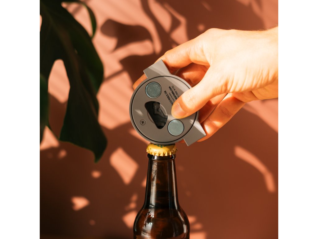 Je vyroben ze slitiny zinku a magnetitové železné rudy. Na zadní straně má zabudovaný otvírák na lahve, který je magnetický, takže jej lze připevnit na ledničku. Rozměry: 8,2 x 6,6 x 1,3 cm.Doplňkové parametry