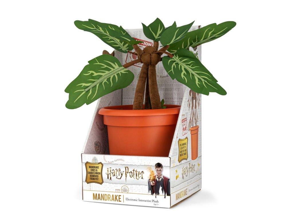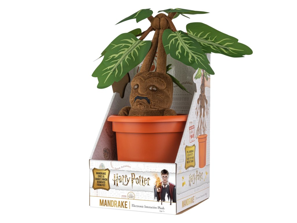 Elektronická interaktivní plyšová Mandragora piští a ječí, když ji vytáhnete z květináče nahoru, po vložení zpět zase ztichne. Sami si tak můžete vyzkoušet hodinu bylinkářství nebo si zahrát na profesorku Prýtovou.