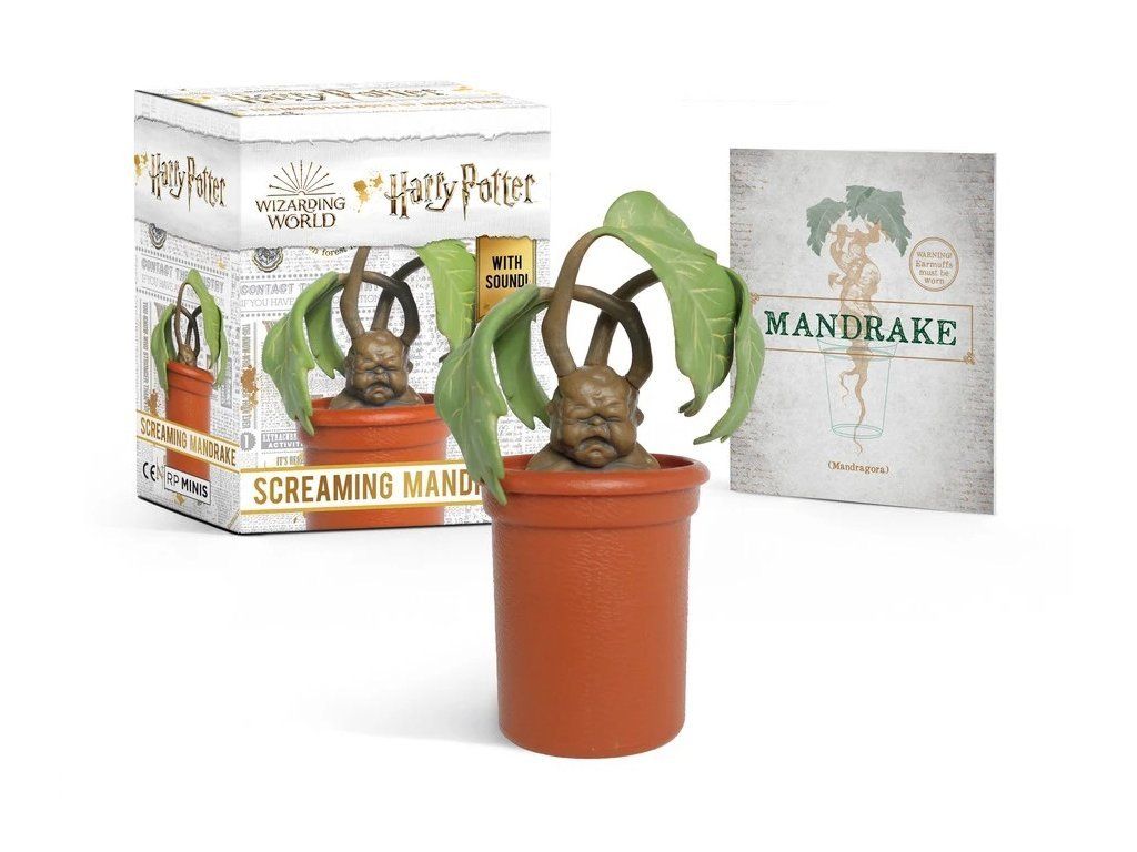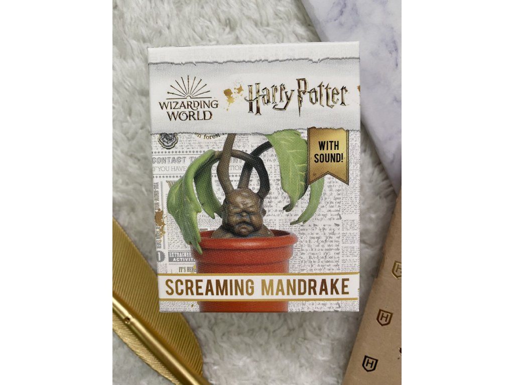 - 7,6 cm replika mandragory s tlačítkem, které přehrává její zvuky, jako jste mohli slyšet ve druhém díle Harry Potter a Tajemná komnata