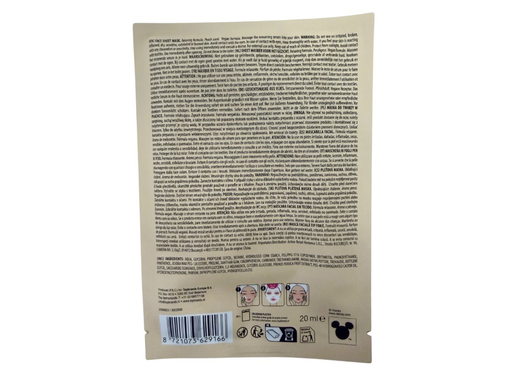 Udělejte si chvilku sami pro sebe. Pusťte si film a nasaďte si na obličej tuto příjemnou pleťovou masku. Je to plátýnková maska připravená k použití, takže nemusíte nic složitě nanášet. Úžasně se osvěžíte a vyživíte pokožku. Biologicky rozložitelný výrobek.