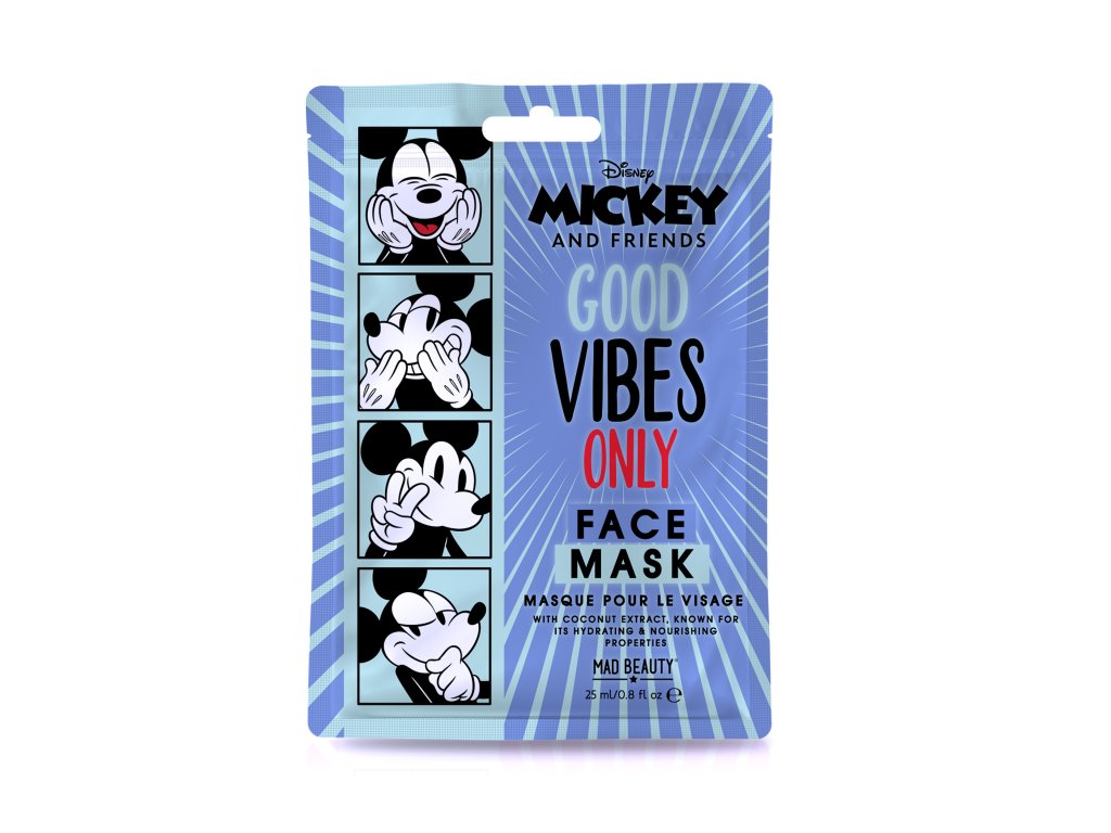 Maska na obličej vyživující hydratační textilní 25 ml Mickey and, Minnie, vůně: kokos. Je vhodná pro všechny typy pleti. Hloubkově hydratuje a intenzivně vyživuje, celkově zkrášluje vzhled pleti, zanechává pleť na dotek hedvábně jemnou, navrací pleti pružnost a pocit pohodlí. Masku opatrně vyjměte z obalu a umístěte na vyčištěný obličej. Nechte působit po dobu uvedenou na obalu. Poté masku opatrně sloupněte. Nevstřebané sérum jemně vmasírujte do pleti nebo otřete vatovým tamponem.
