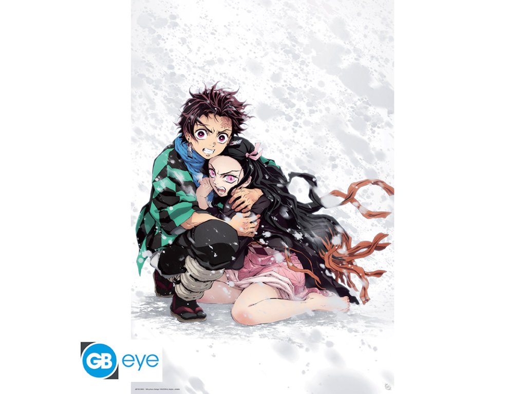 Chraňte ji za každou cenu! Tanjiro chrání svou sestru Nezuko pod sněhem na tomto nádherném plakátu Demon Slayer od GB eye!Doplňkové parametry