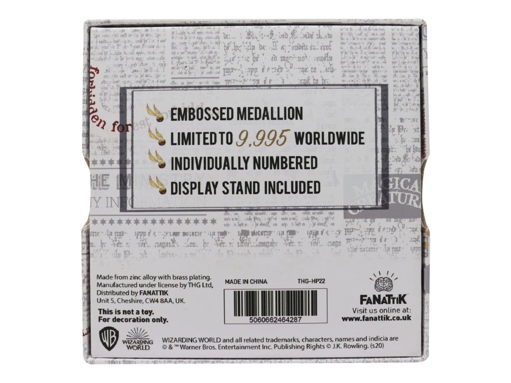 Oficiálně licencovaný sběratelský kousek Harryho Pottera, který vyšel v celosvětové limitované edici, a to pouze v 9995 kusech. Medailon disponuje krásným detailním designem a každý obsahuje číslo v sérii.