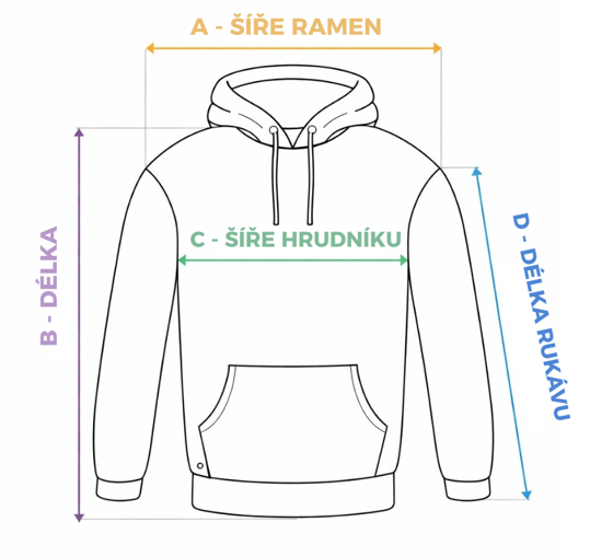 Velikost XS: A-45 cm, B-59 cm , C-50 cm, D-62 cm