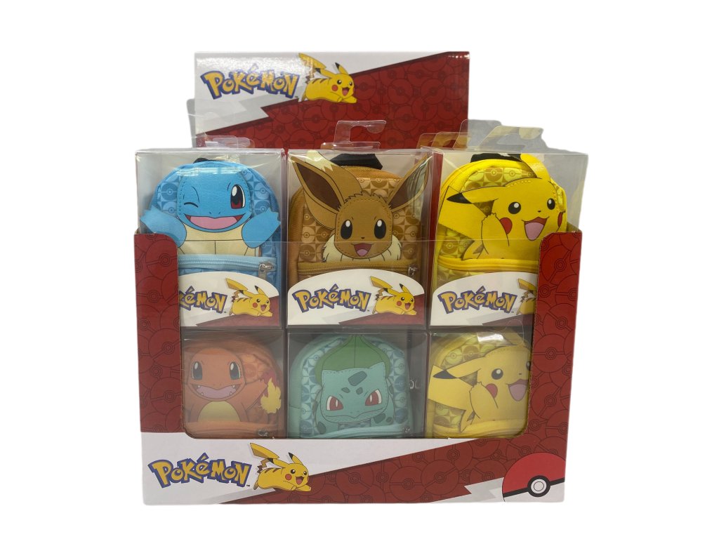 Malý batůžek v licenčních motivech Pokémon. Na výběr máte 4 druhy: Pikachu, Eevee, Bulbasaur, Squirtle a Charizard. Batůžek je ideální na kartičky Pokémon, mince a další drobnosti každého fanouška.