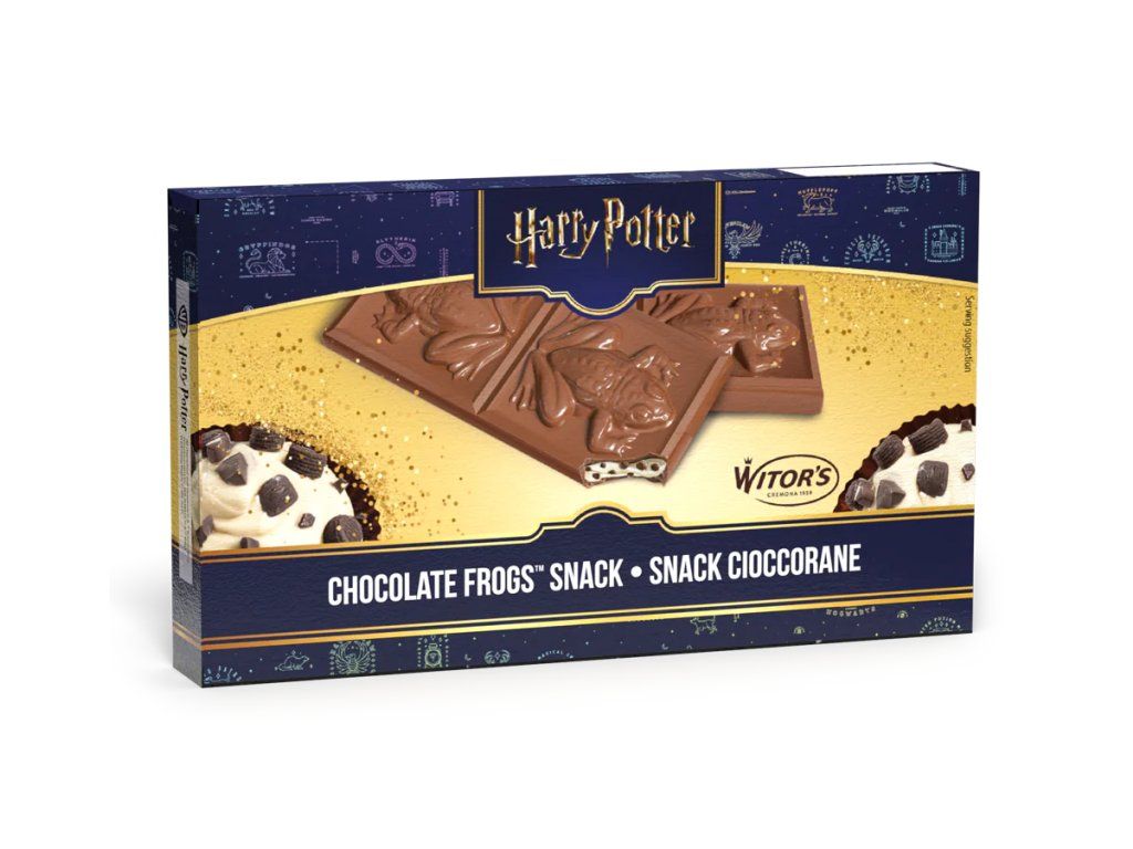 Originální čokoládová pochoutka inspirovaná světem Harryho Pottera přináší kousek kouzelnické atmosféry do každého sousta. Lahodná mléčná čokoláda je zdobená vtipnými motivy žab, které připomínají ikonické čokoládové žáby z filmů a knih o mladém čaroději.