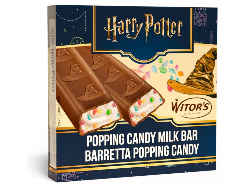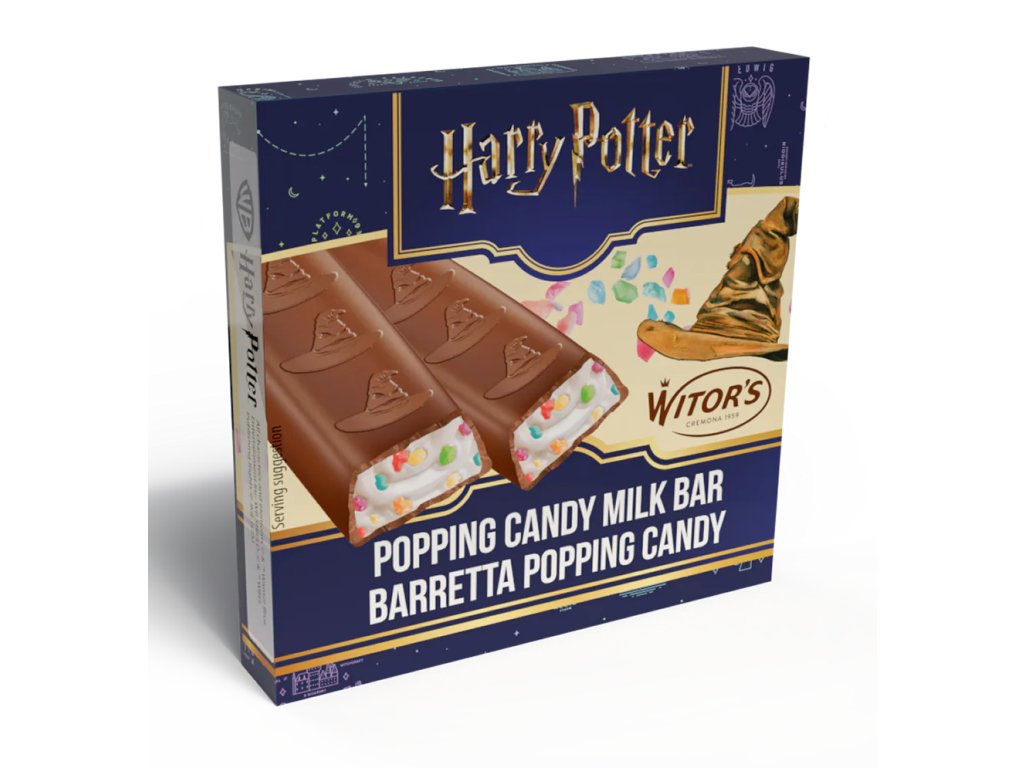 Objev kouzelný zážitek v každém soustu s touto výtečnou mléčnou čokoládou plnou praskajících cukrových kousků, které tě zanesou přímo do čarodějného světa Harryho Pottera. Čokoládová tyčinka s motivem Moudrého klobouku skrývá uvnitř jemný čokoládový krém a barevné křupající bonbony, jež v ústech vytvářejí hravý, praskající efekt. Skvělá volba jako sladká odměna, originální dárek nebo sběratelská pochoutka pro všechny fanoušky kouzel a čar.