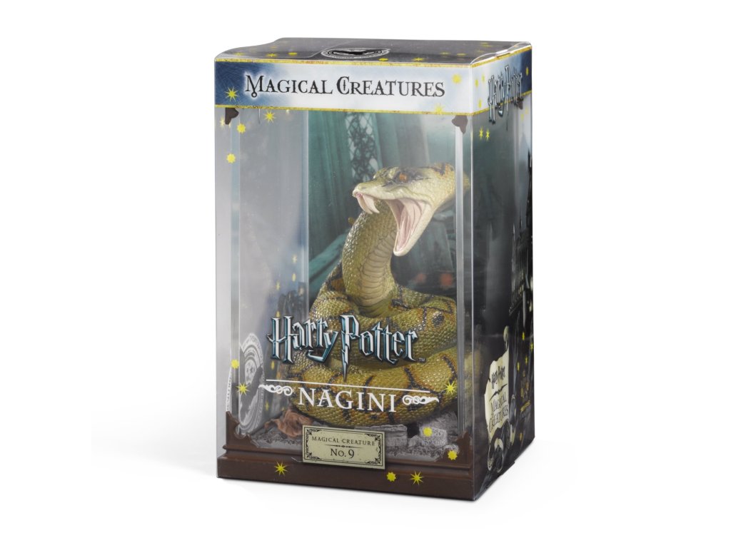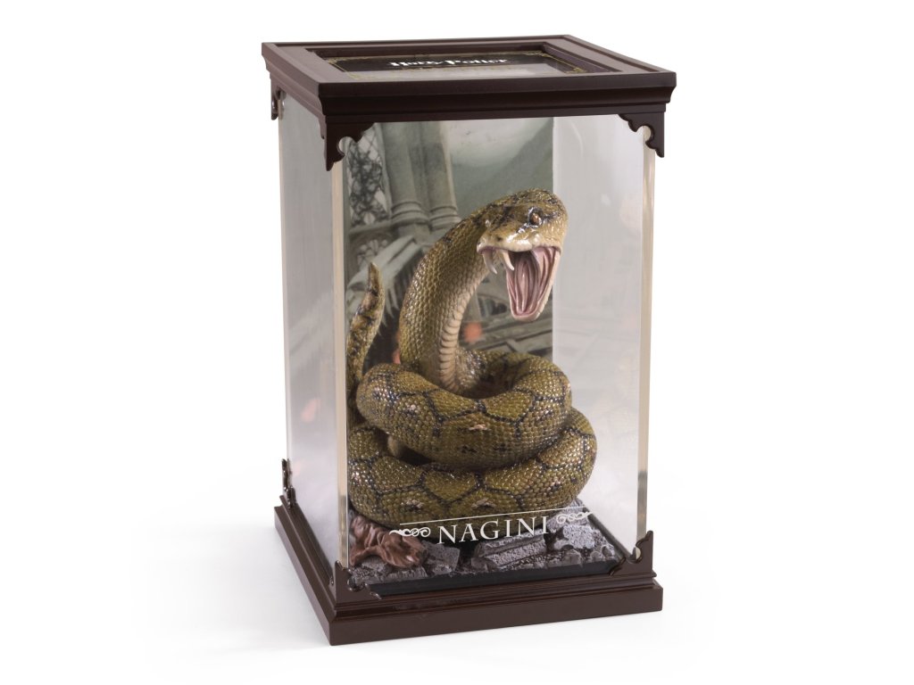 Sběratelská figurka v průhledné vitríně - Nagini. Je to strašlivý had ženského pohlaví a Malediktus, který sloužil lordu Voldemortovi