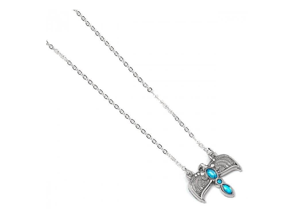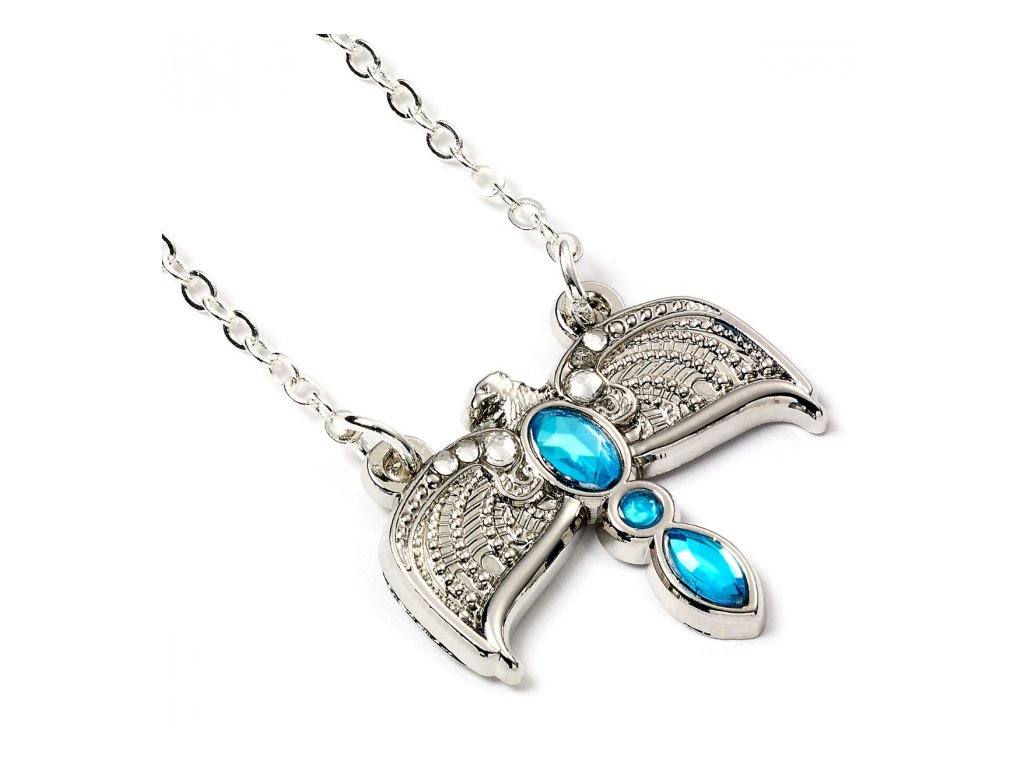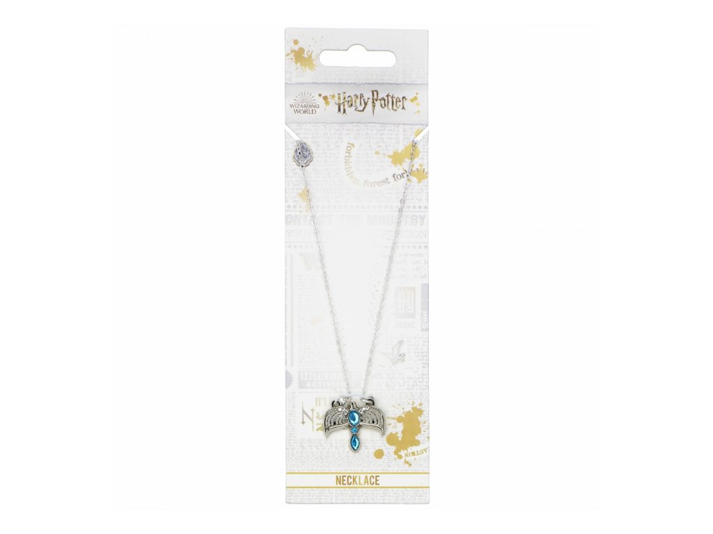 Elegantní náhrdelník - ideální dárek pro každou velkou či malou čarodějku. Postříbřený šperk vyobrazuje jeden z viteálů Lorda Voldemorta, a to Diadém Roweny z Havraspáru. Řetízek měří 40 cm a lze až o 4 cm prodloužit.