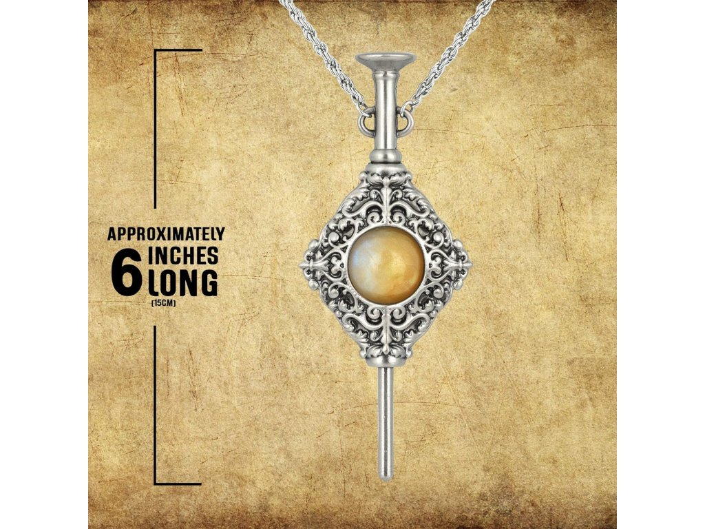 Přívěsek působí výrazně a sběratelsky – díky svému charakteristickému tvaru se hodí nejen jako doplněk ke kostýmu, ale také jako originální kousek do sbírky replik.