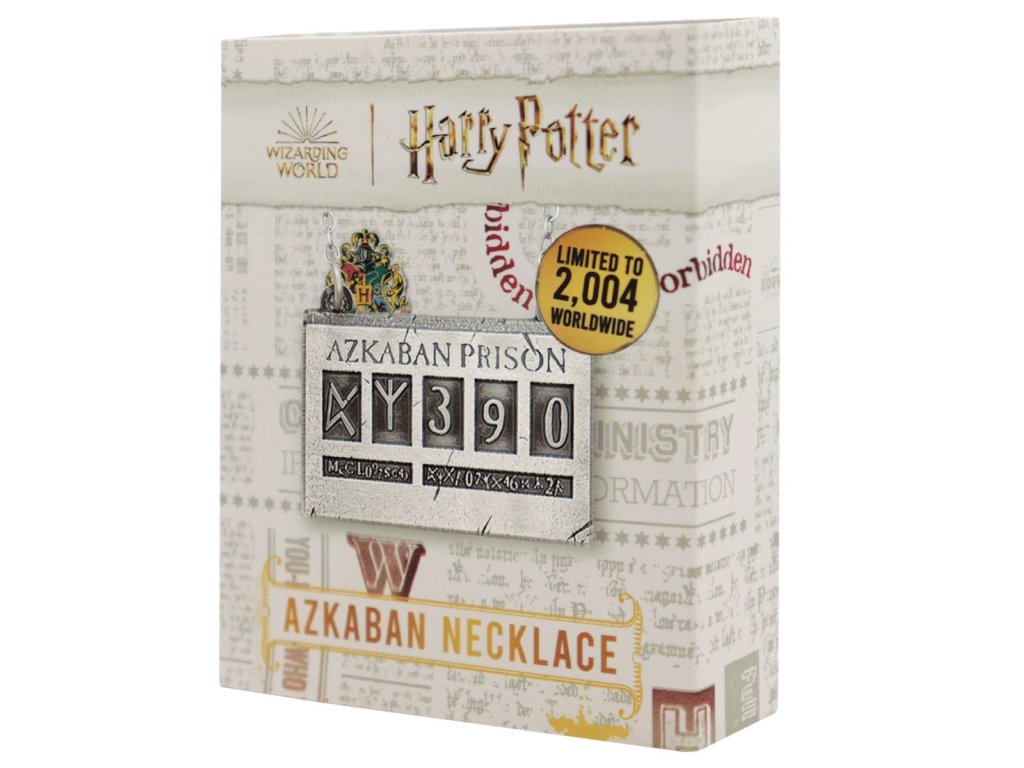 Kovový náhrdelník v designu ikonické vězeňské cedulky Siriuse Blacka z kouzelnického vězení Azkaban.